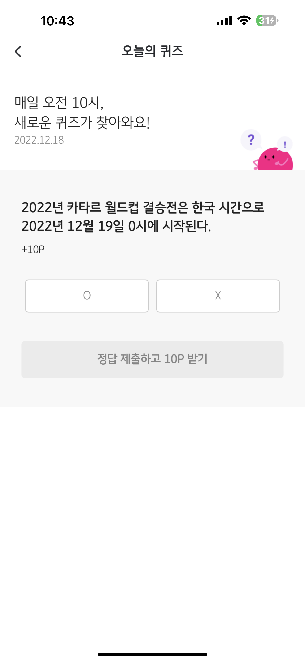2022년 카타르 월드컵 결승전은 한국 시간으로 2022년 12월 19일 0시에 시작된다. O, X 퀴즈인데요. 드디어 2022 카타르 월드컵을 마무리 하는 날이라 기념으로 나온 것 같습니다. 8강전은 우리나라 시간으로 새벽 4시에 해서 카타르 월드컵 결승전도 새벽 4시라 착각할 수 있는데 아닙니다.