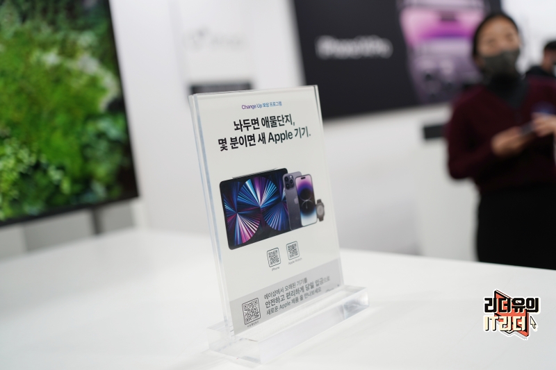 에이샵 코엑스에 가면 체인지업 프로그램이 소개되고 있습니다. 애플 보상판매 서비스로 애플 디바이스 새 제품 구매 시 이용가능한 애플 보상판매 서비스 입니다. 참고로 체인지업 보상 판매 서비스는 에이샵 뿐만 아니라 다른 애플 리셀러 샵에서도 똑같이 이용할 수 있습니다.