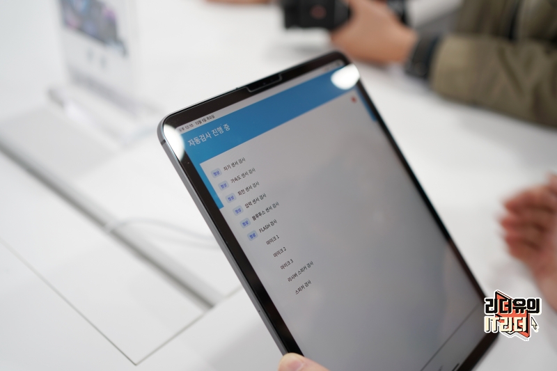 그럼 알아서 내부 하드웨어의 자동 검사를 하게 됩니다. 자기 센서 검사, 가속도 센서 검사, 회전 센서 검사, 블루투스 센서 검사, FLASH 검사, 마이크1, 마이크2, 마이크3, 리시버 스피커 검사, 스피커 감사가 이뤄집니다.