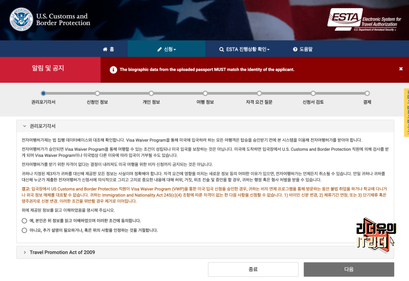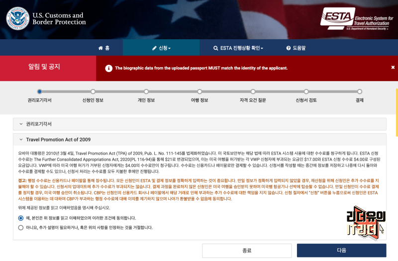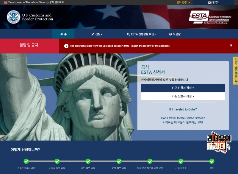미국 여행 시 ESTA 비자 (이스타 비자) 발급 신청 방법 어렵지 않으시죠? 한글로 기본적으로 안내되어 있으니 부담없이 신청하시면 됩니다.