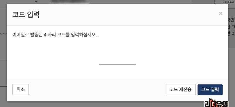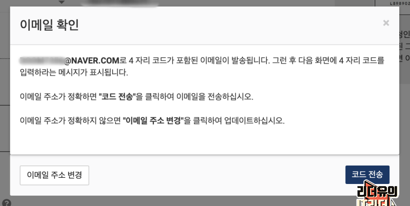 그리고 이메일 확인 절차에 들어갑니다. 이메일로 발급 내용이 전달되니 제대로된 메일인지 확인하는 것입니다. 코드 전송을 하면 입력한 이메일로 전송이 됩니다.