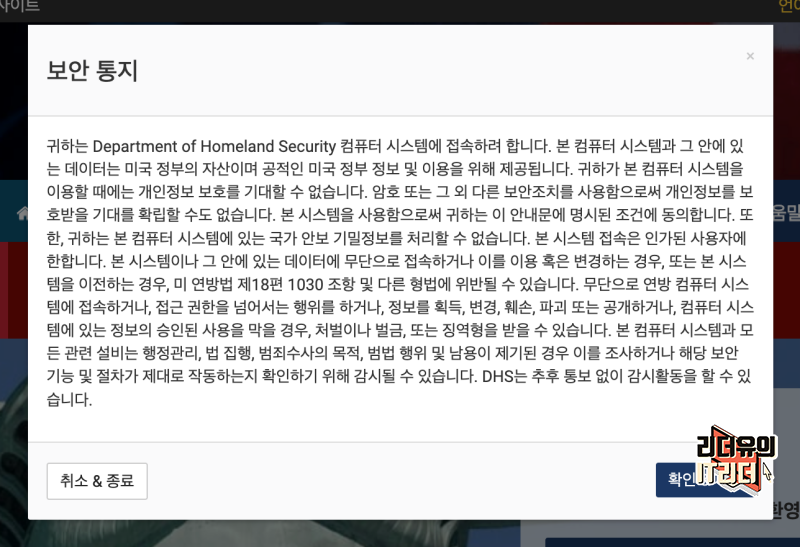 그럼 보안 통지를 공지하고 있습니다. 한번 읽어보고 확인 누르시면 됩니다.