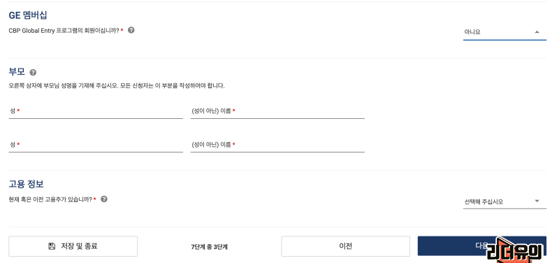 GE멤버십은 아니라고 하면 되고 부모님 성함을 영문으로 입력합니다. 영문 철자가 틀려도 되니 너무 부담 갖지 않으셔도 됩니다.