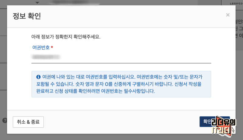 그럼 한번 더 여권정보가 맞는지 확인하는 절차를 거칩니다. 그만큼 입력이 틀리면 안되기 때문에 꼼꼼하게 확인을 하셔야 합니다.