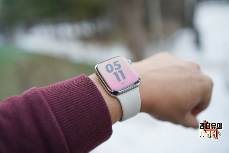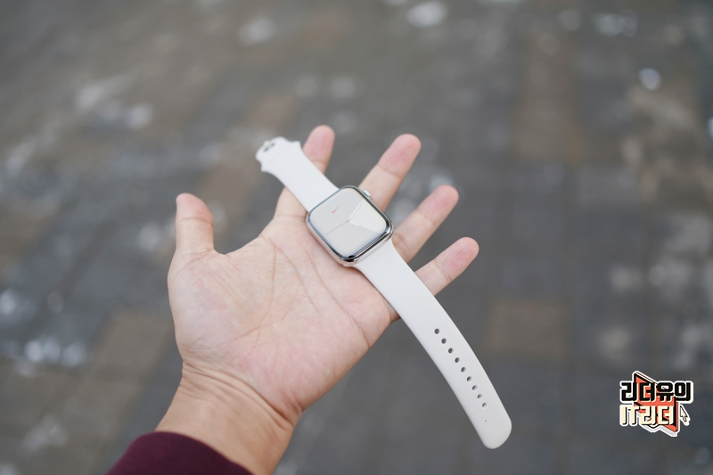 애플워치8 스테인리스 스틸 실버와 다이소 애플워치 실리콘 밴드 조합은 사실상 정품이라 봐도 될 정도로 완벽한 핏감을 느낄 수 있습니다.