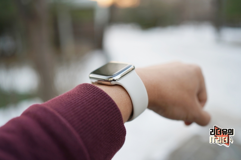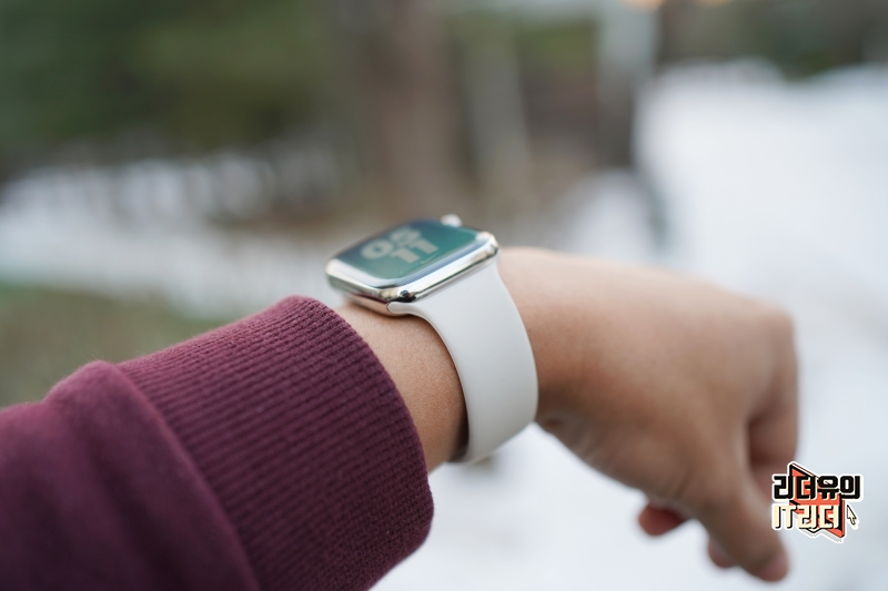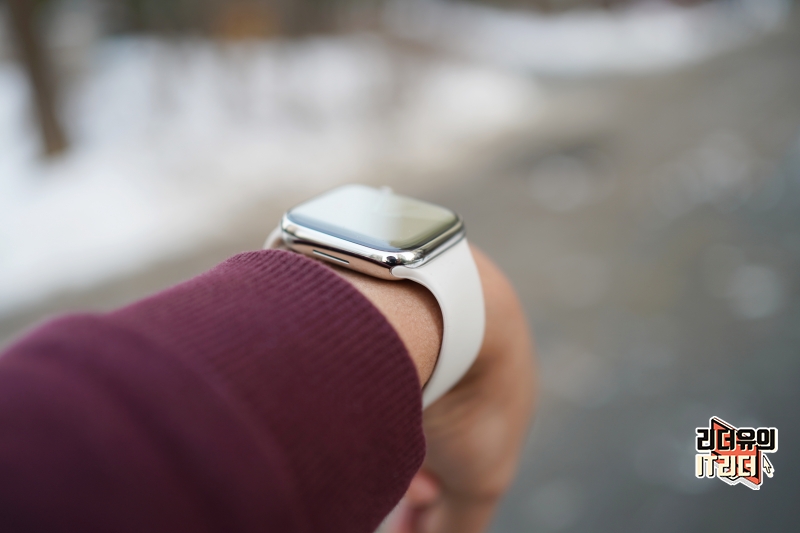 애플워치8 스테인리스 스틸 실버와 다이소 애플워치 실리콘 밴드 조합은 사실상 정품이라 봐도 될 정도로 완벽한 핏감을 느낄 수 있습니다.
