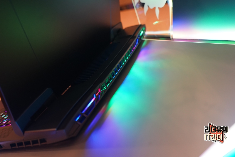 송풍구 위쪽에도 두 줄의 포인트 LED를 넣어 색이 변경되는 효과를 주고 있습니다. 아마 노트북 중에서 뒷태가 가장 화려한 노트북이 아닐까 합니다.