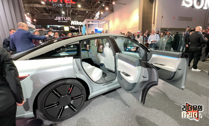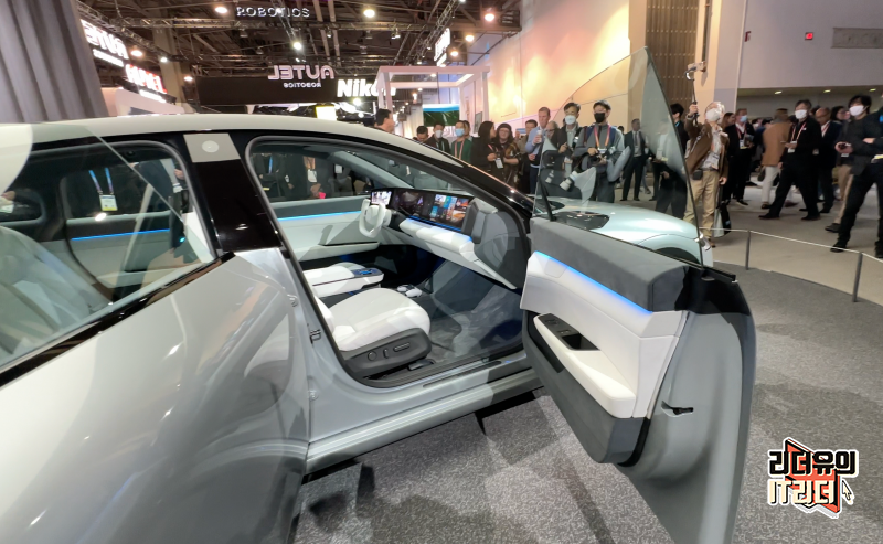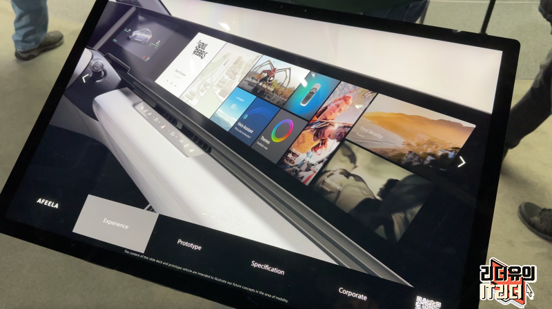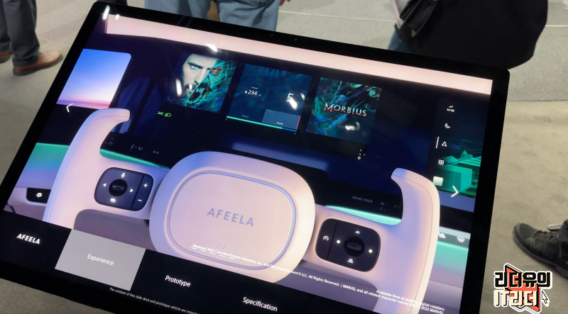와이드한 디스플레이에는 소니의 콘텐츠인 스파이더맨이 나오고 있었습니다. 소니는 전기차 컨셉을 소니가 가장 잘하고 있는 영역을 특화한 모델로 포지션했습니다. 멀티미디어, 게임에 특화된 전기차 입니다.
