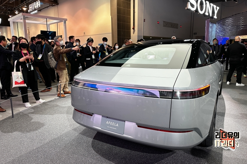 소니 전기차 아필라 AFEELA 후면도 전면과 마찬가지로 디스플레이를 가지고 있습니다. 테일램프 영역을 잇는 기다란 디스플레이를 통해 다양한 이미지, 동영상, 텍스트를 표시하고 있습니다. 어쩌면 우리가 상상만 하던 자동차를 현실로 만들어 냈습니다.