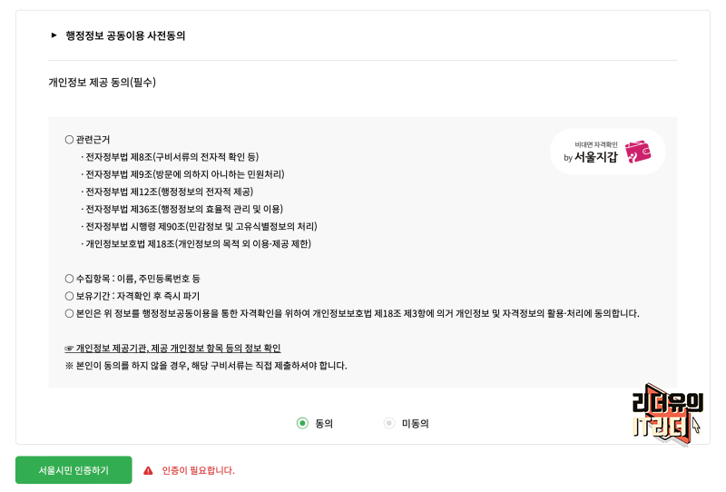 그 다음 서울시민 인증 절차를 거칩니다.
