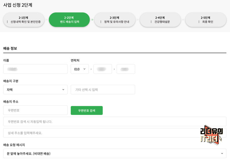 이제 배송 정보를 입력합니다. 스마트워치를 받을 정보입니다.