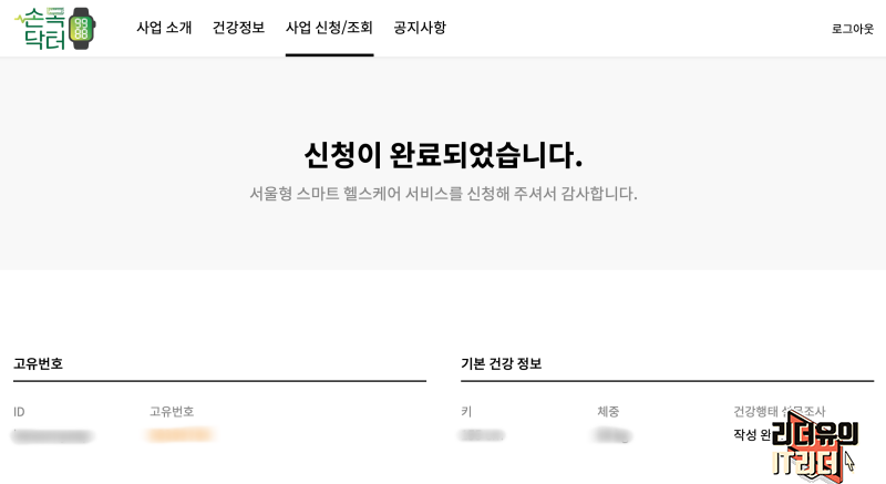 서울시 손목닥터9988 신청이 완료됩니다. 간단하죠. 이제 무료 스마트워치를 받아 열심히 건강관리도 하고 포인트도 받으면 됩니다. 서울시 손목닥터9988 대상이신 분들은 꼭 신청하셔서 건강도 챙기고 혜택도 받으면 좋을 것 같습니다.