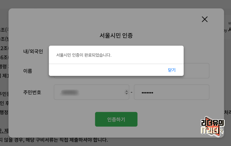 그 다음 서울시민 인증 절차를 거칩니다.