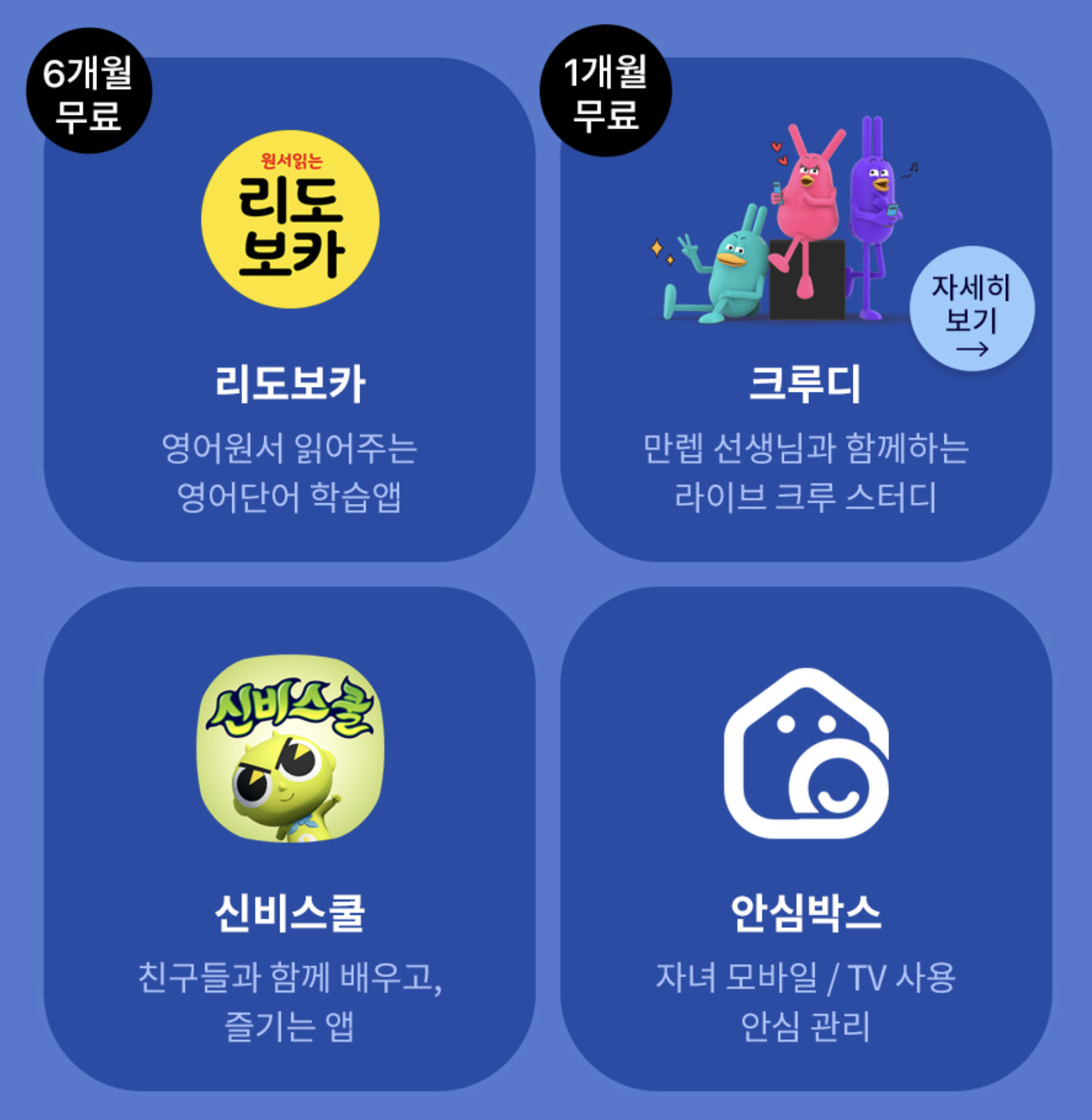 그리고 아이들의 교육적인 측면과 안심하고 사용할 수 있는 서비스를 제공하고 있습니다. 나름 괜찮은 구성이기도 하지만 속도가 느린 스마트폰이라 과연 얼마나 사용될지는 미지수입니다.