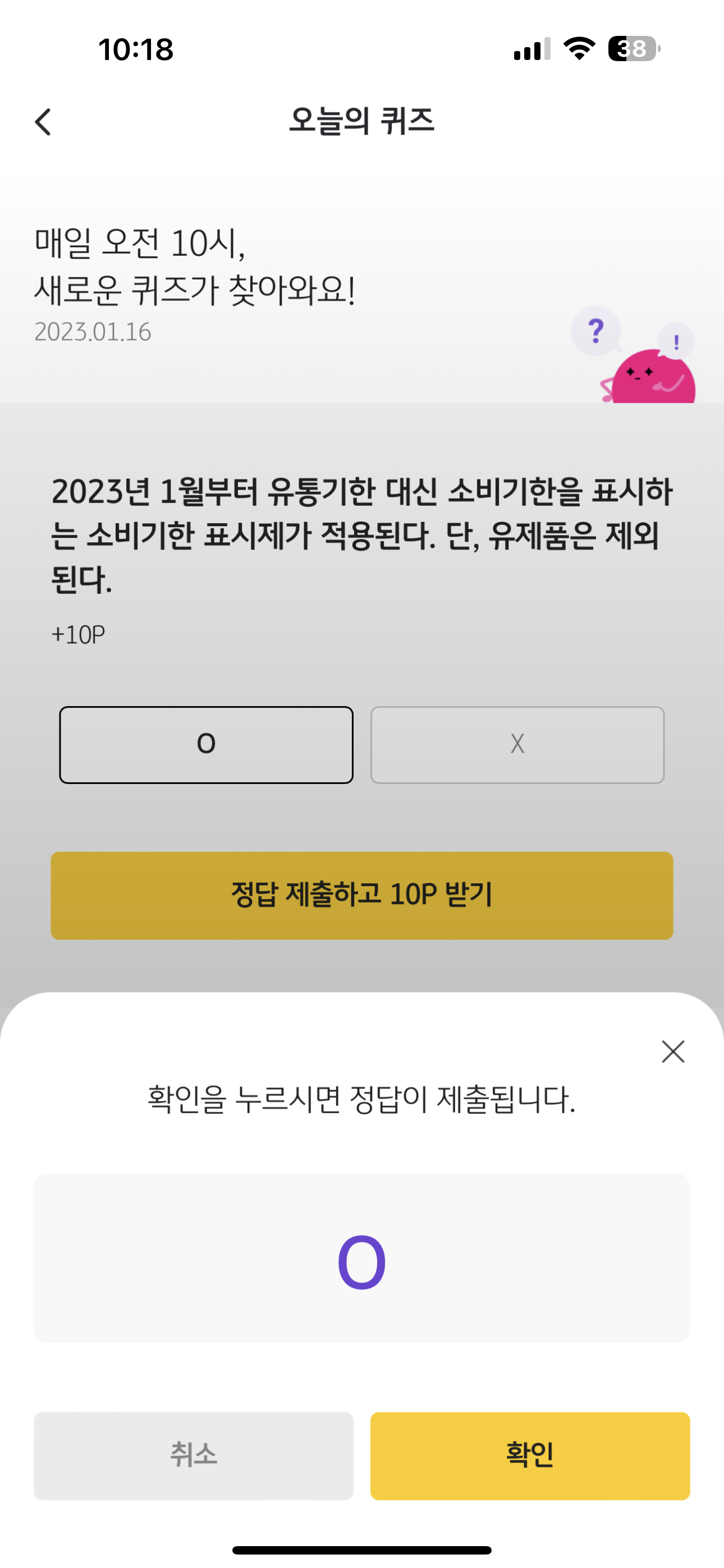 리브메이트 KB PAY 오늘의 퀴즈 1월 16일 정답 ( 2023년 1월부터 유통기한 대신 소비기한을 표시하는 소비기한 표시제가 적용된다 )