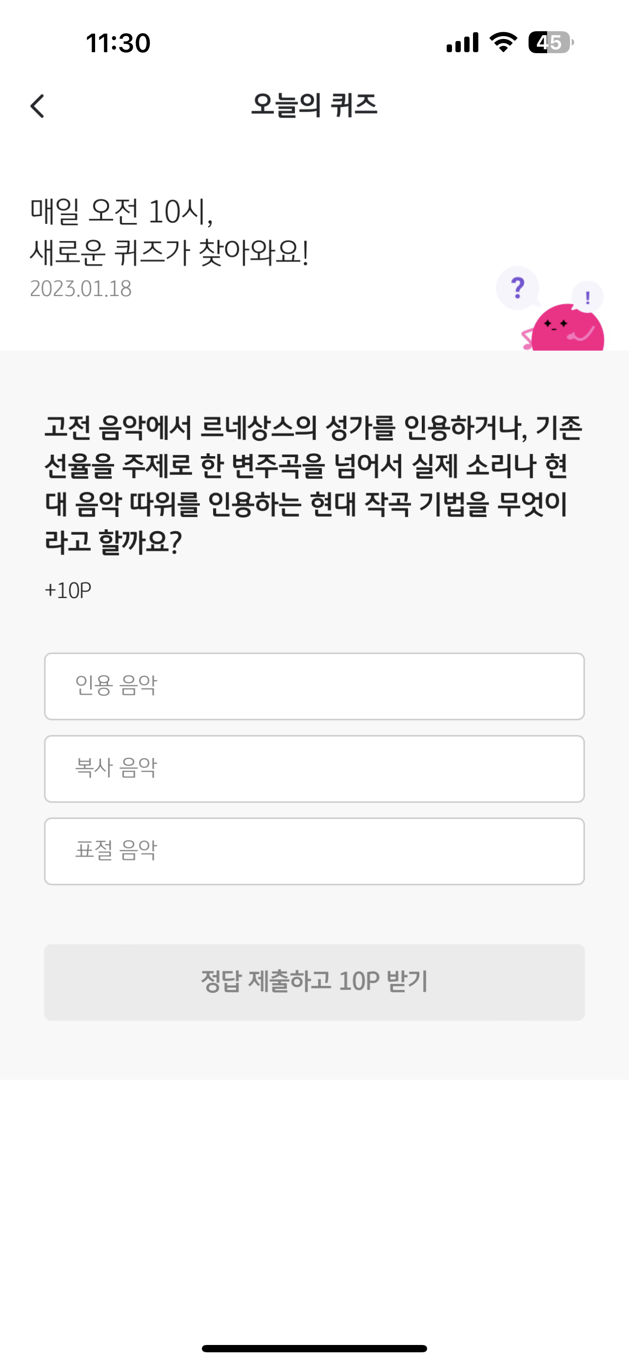 리브메이트 KB PAY 오늘의 퀴즈 1월 18일 정답은 인용 음악 입니다