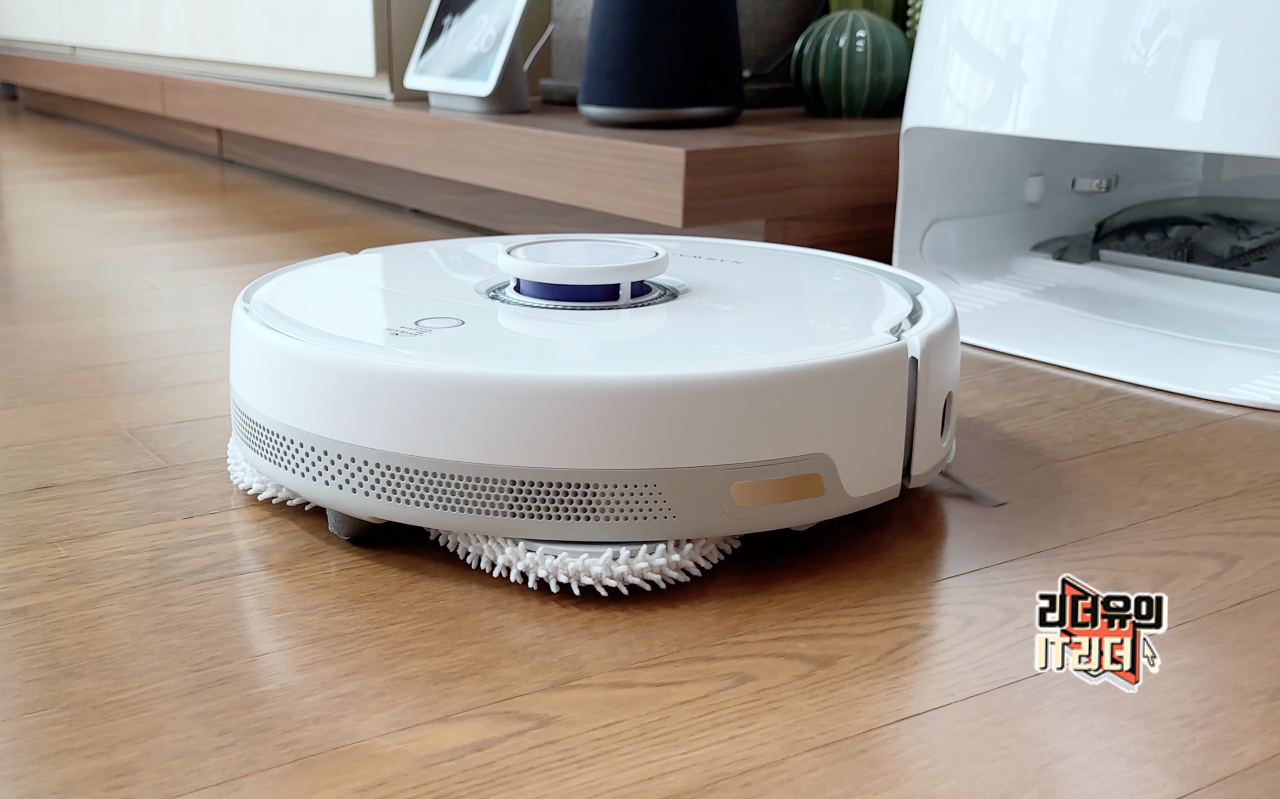 예를 들어 여러분이 바닥을 물걸레 청소한다고 생각해 보세요. 물만 묻히고 지나가나요? 아니죠? 몇 번 왕복하면서 바닥의 찌든때를 닦아줍니다. 그런데 보통의 물걸레 로봇청소기는 바닥에 걸레를 장착하고 지나가는 수준에서 바닥 청소를 하고 있습니다. 당연히 제대로된 물걸레 청소가 될 수 없습니다. 그래서 진정한 물걸레 청소라면 회전형 걸레를 탑재해야 제대로된 물걸레 청소를 할 수 있습니다.