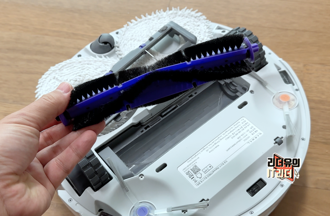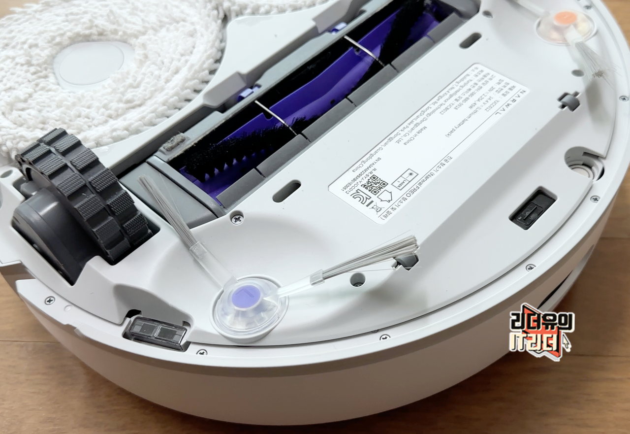 바닥면에는 가운데 3000Pa의 흡입력을 가진 흡입구가 있고 롤러 브러시가 있습니다.