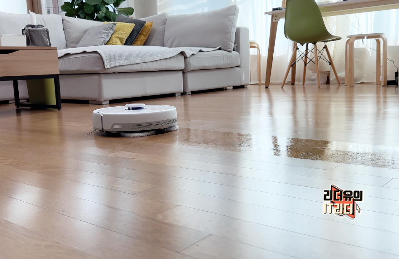 그리고 또 한가지 놓치고 있는 부분이 보통 물걸레를 장착하고 전체 바닥을 청소한다는 것입니다. 이게 무슨 문제냐 생각이 드실 수 있는데 물걸레로 바닥을 닦다 보면 걸레가 더러워지겠죠. 사람의 경우 물걸레 청소를 할때는 일정 영역을 청소하면 면을 뒤집어서 청소를 하고 어느 정도 하면 다시 빨고 물걸레 청소를 합니다. 그런데 보통의 로봇청소기는 바닥에 물걸레를 장착하고 전체 면적을 청소합니다. 그러면 초반에는 물걸레 청소가 되긴 하지만 나중에 청소하는 바닥은 오히려 바닥을 더럽히게 되는 것입니다. 더러워진 걸레로 바닥을 닦으니까 깨끗한 바닥도 더럽게 만드는 것입니다.