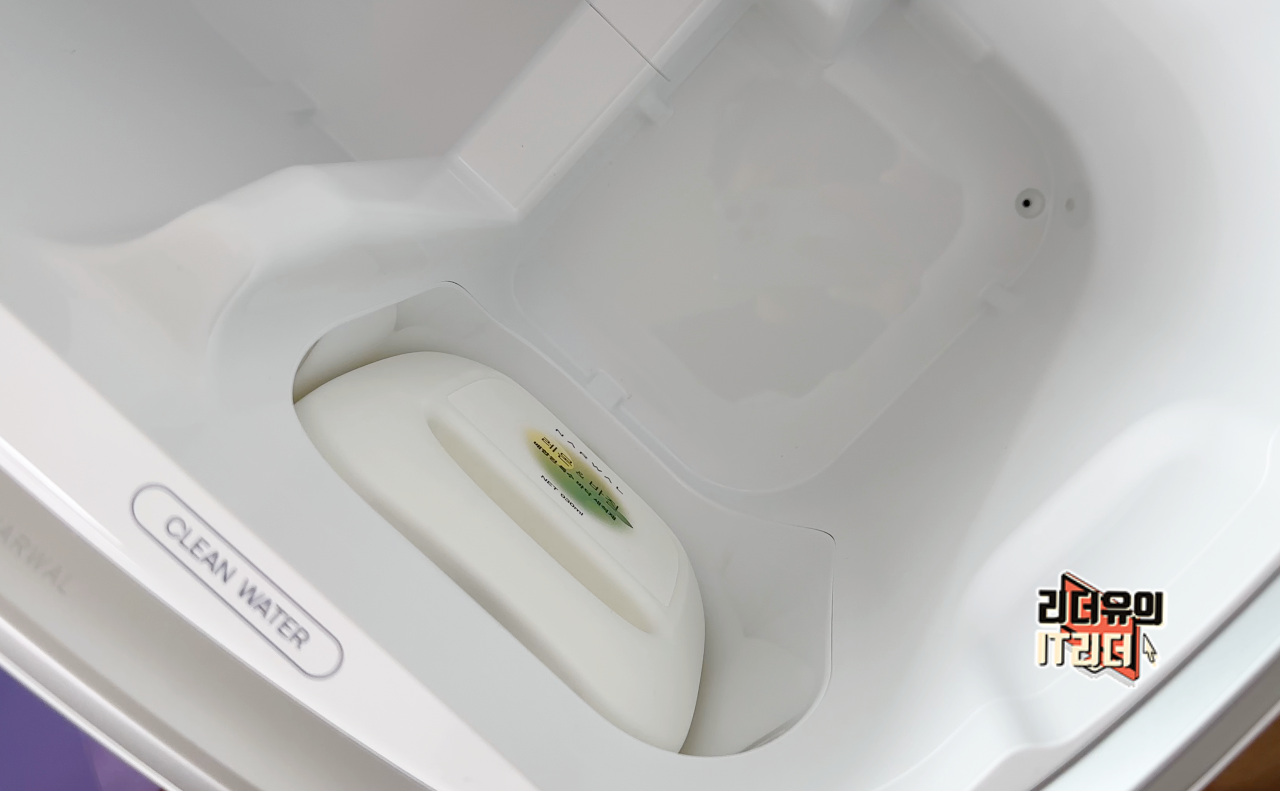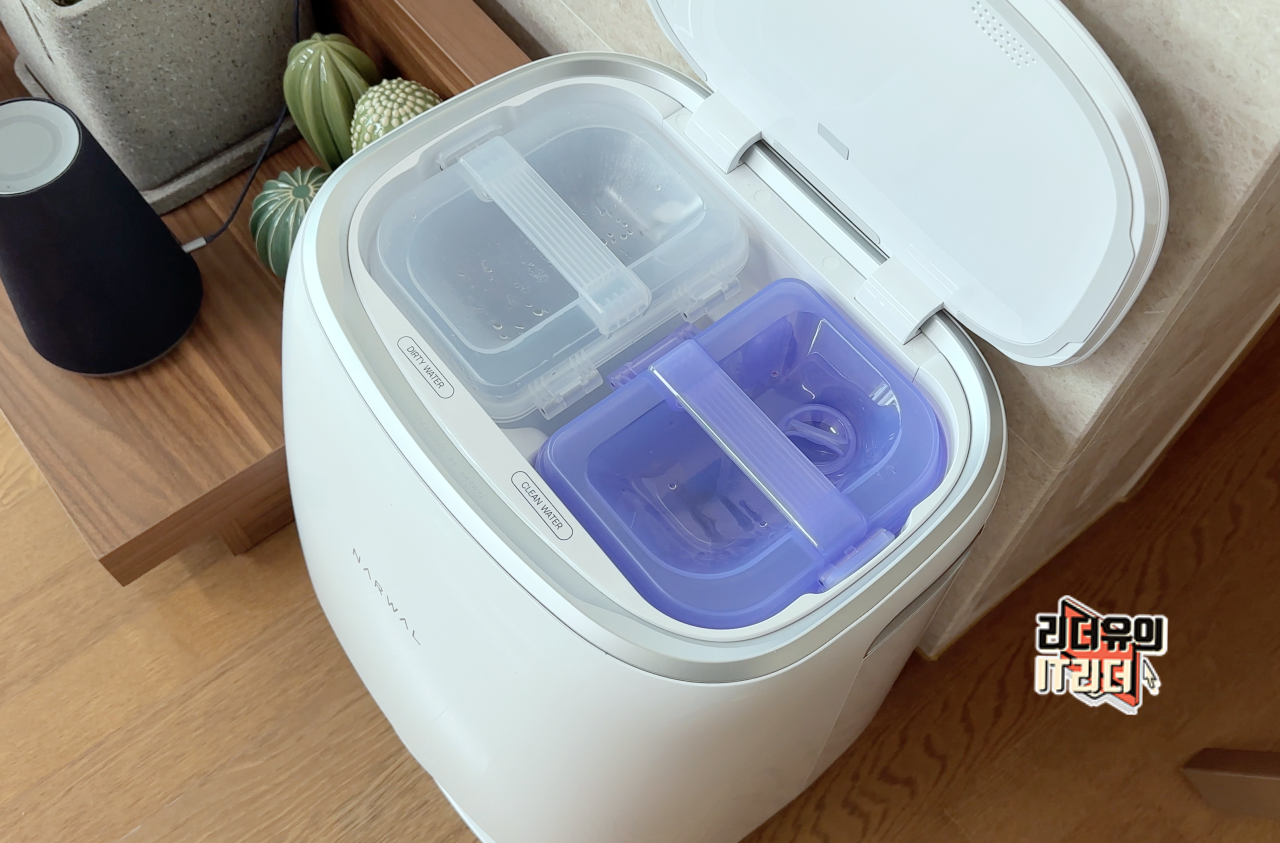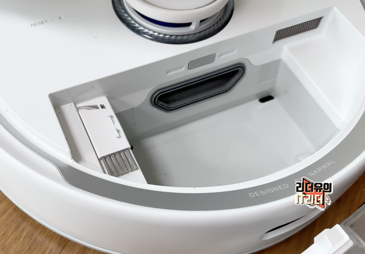 그리고 나르왈 프레오 로봇청소기는 걸레를 단순히 물로만 세척하지 않고 세제를 이용해 제대로된 물걸레 세척을 합니다. 세제도 사용자가 따로 넣는게 아닌 베이스 스테이에 세제를 장착해 알아서 세제를 투입해 세척을 합니다.