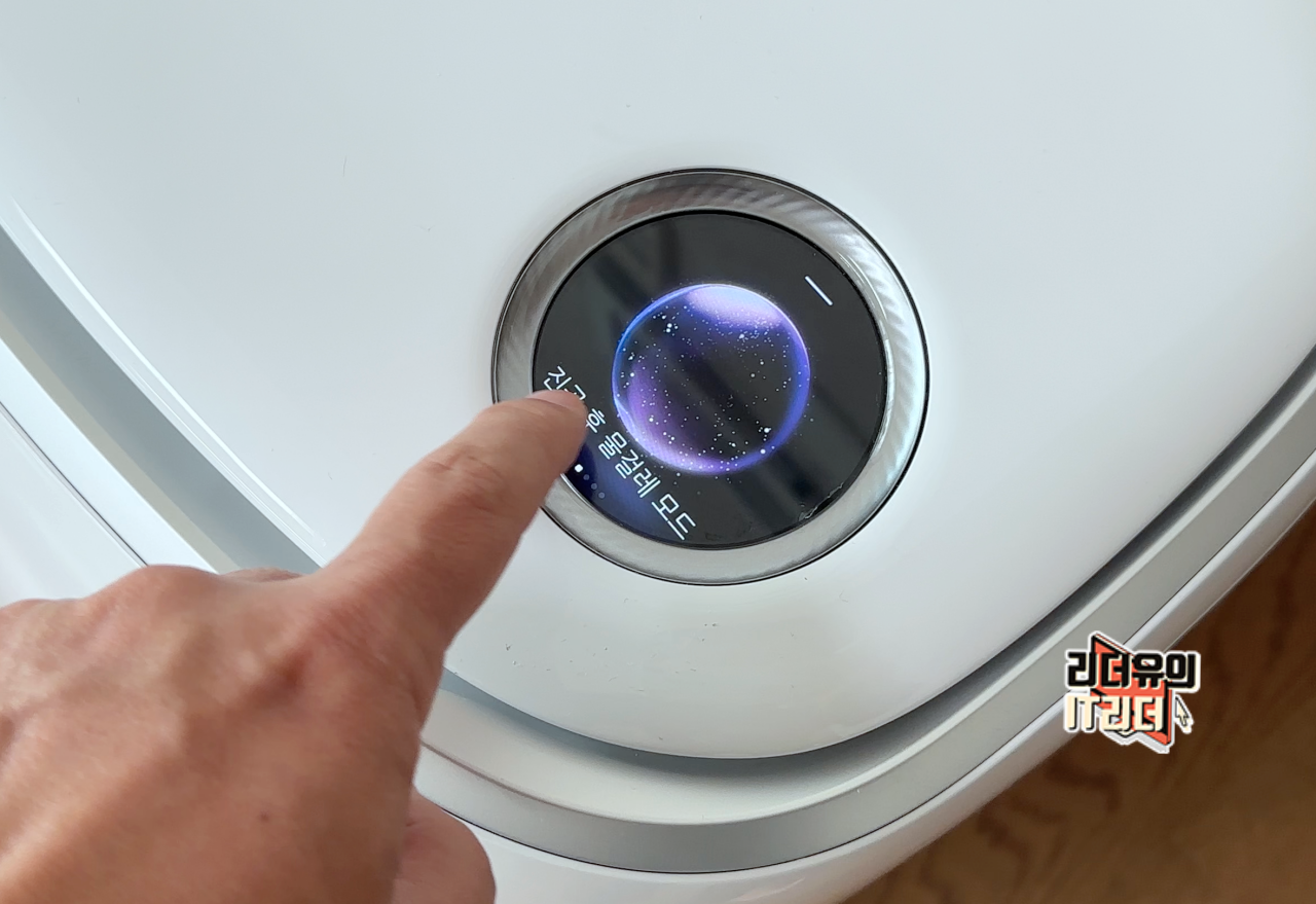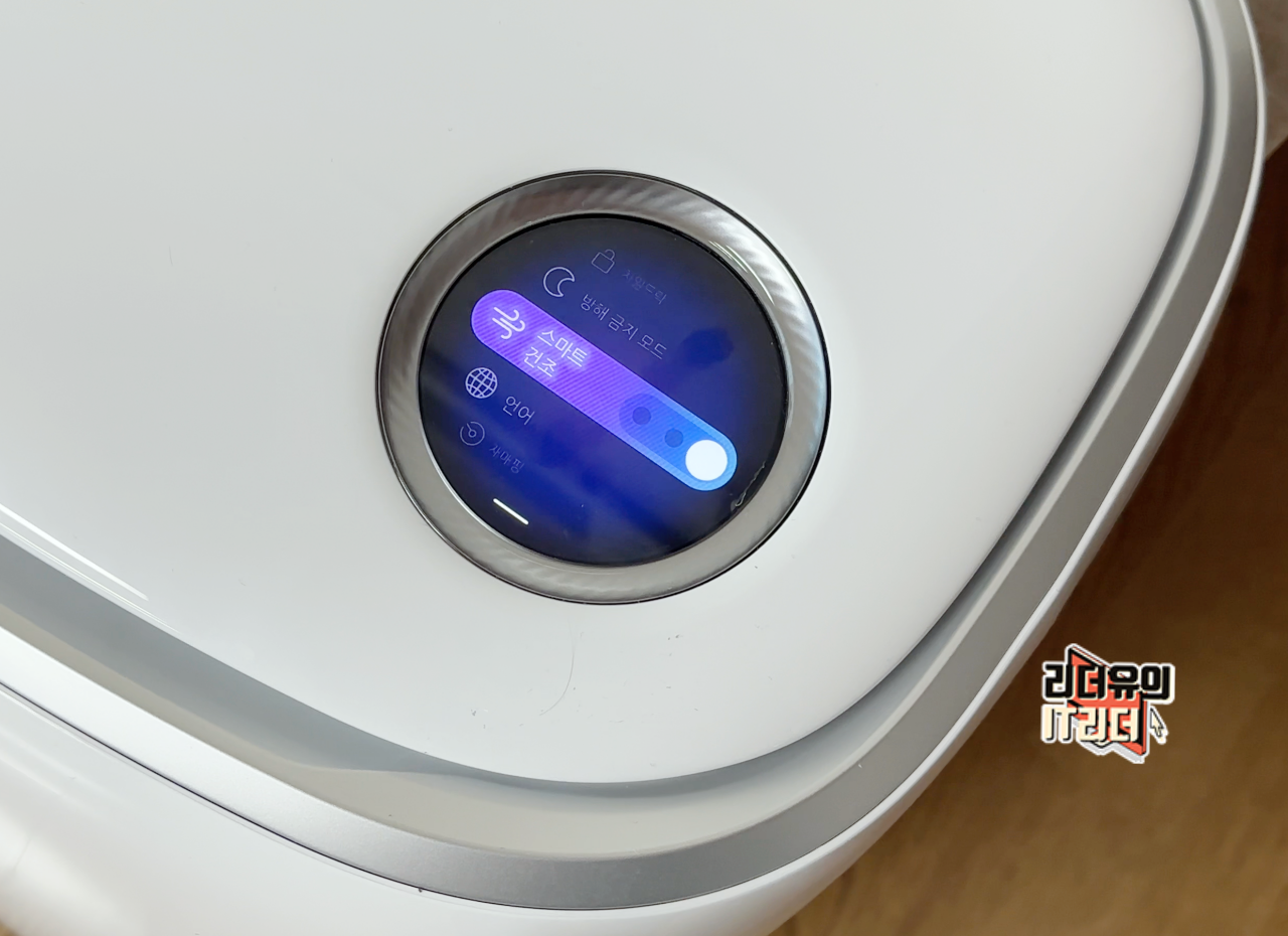 일반 로봇청소기에서는 볼 수 없는 원형의 터치스크린을 가지고 있습니다. 터치를 하면 화면이 켜지는데요. 캐릭터로 생동감있는 화면을 보여주기도 하고 디스플레이 품질도 좋아서 포인트되는 디자인 효과를 느낄 수 있습니다.