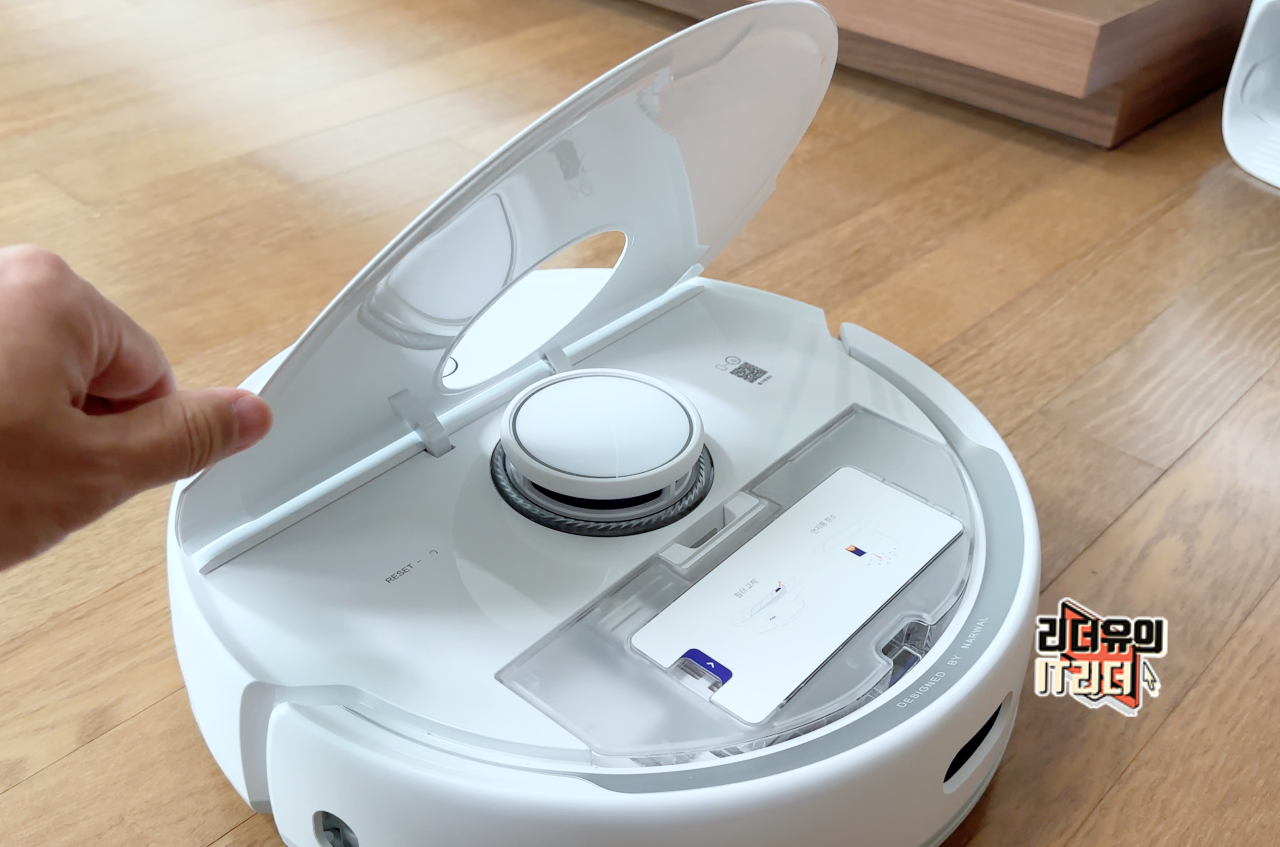 그리고 로봇청소기도 같은 화이트로 되어 있어 깨끗한 디자인 매력을 느낄수 있습니다. 전체적으로 부드러운 라인을 통해 우아한 디자인을 느낄 수 있습니다.