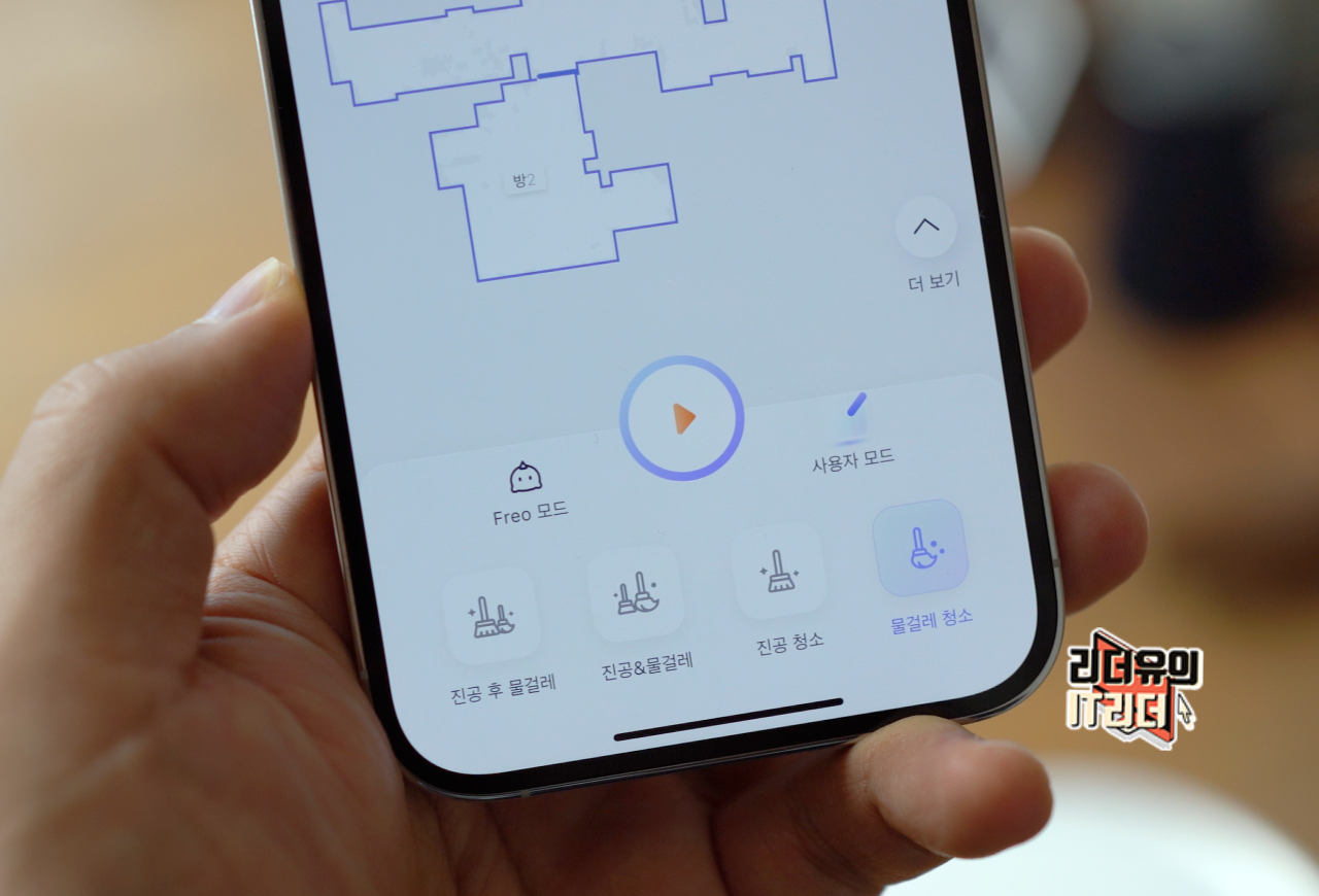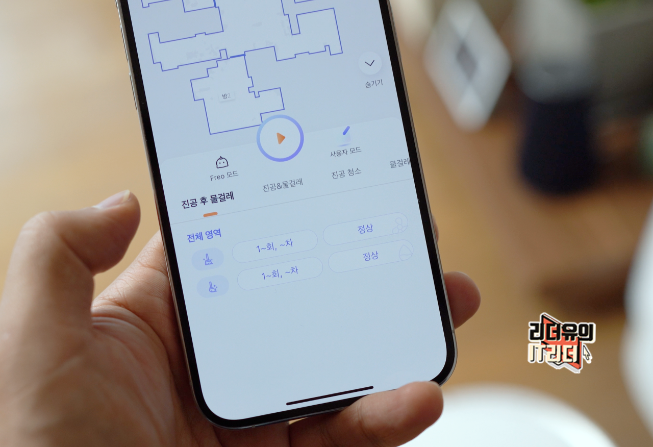 물론 사용자 모드도 있기 때문에 각자 원하는 모드 선택이 가능합니다. 청소 모드는 진공 후 물걸레, 진공&물걸레, 진공 청소, 물걸레 청소 모드를 선택할 수 있고 추가적인 옵션 선택도 지원합니다.