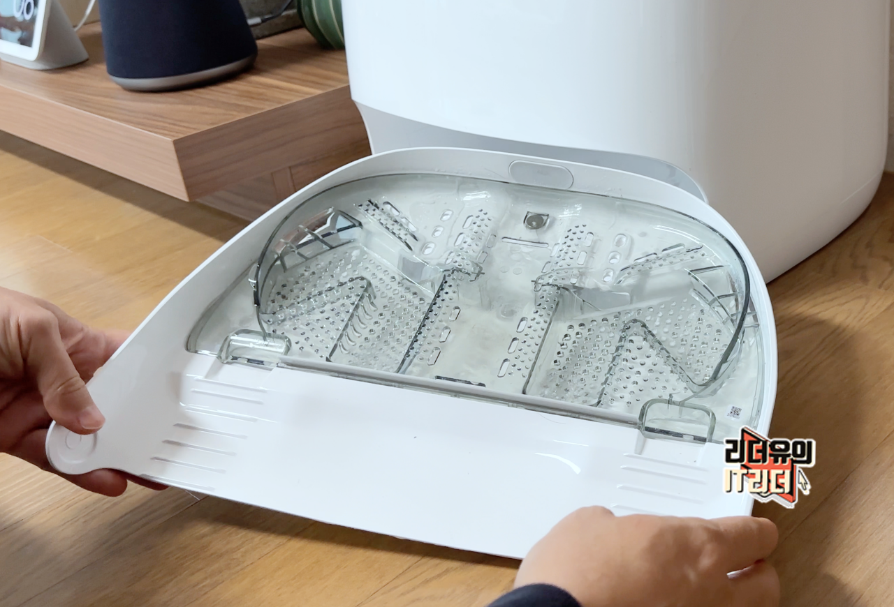 물걸레 청소가 끝나면 건조도 중요하죠. 물걸레가 제대로 건조가 안되면 냄새가 날 수 밖에 없는데요. 40도의 듀얼 열풍건조로 고르게 물걸레를 건조시켜 줍니다.