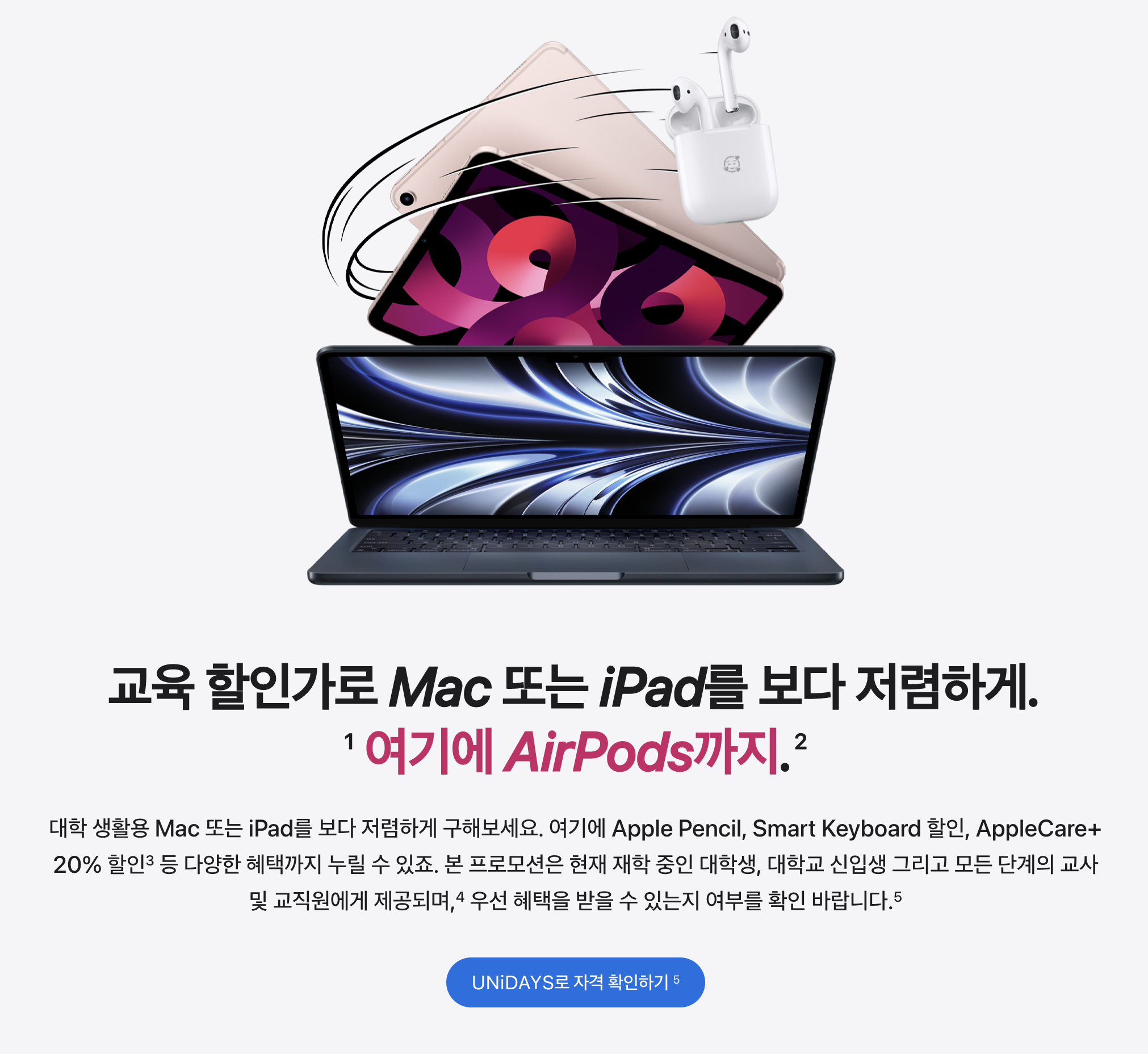 2023년 애플 교육 할인 맥북, 아이패드 할인, 에어팟 2세대 무료, 애플케어플러스 할인 UNiDYAS 인증