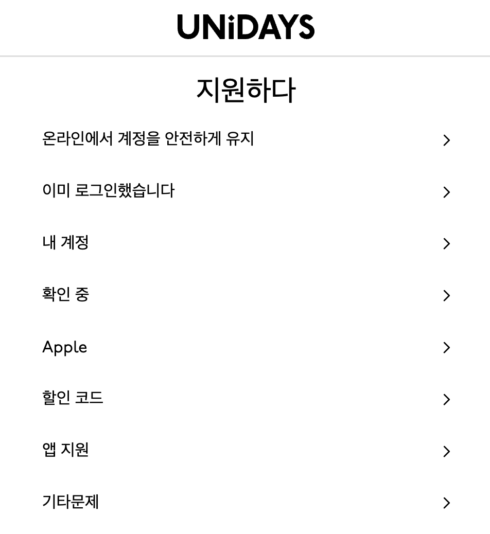그때는 인증 페이지 내 '지원' 탭을 눌러 UNiDAYS 담당자의 지원 서비스를 받거나 전화를 걸어 교육 할인 견적을 요청하면 메일로 받을 수 있고 결제를 하고 나중에 인증을 메일로 하시면 됩니다.