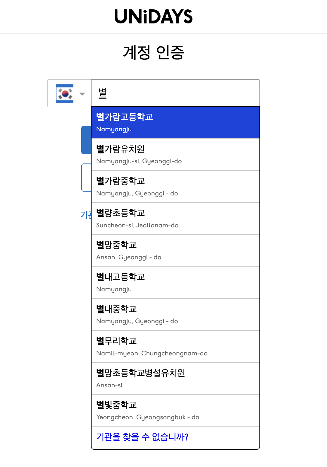 UNiDAYS 인증을 할때 검색을 하면 해당 교육 기관의 명칭을 찾을 수 있습니다. 하지만 모든 학교가 다 인증이 되는건 아닙니다. 없는 학교도 있거든요.