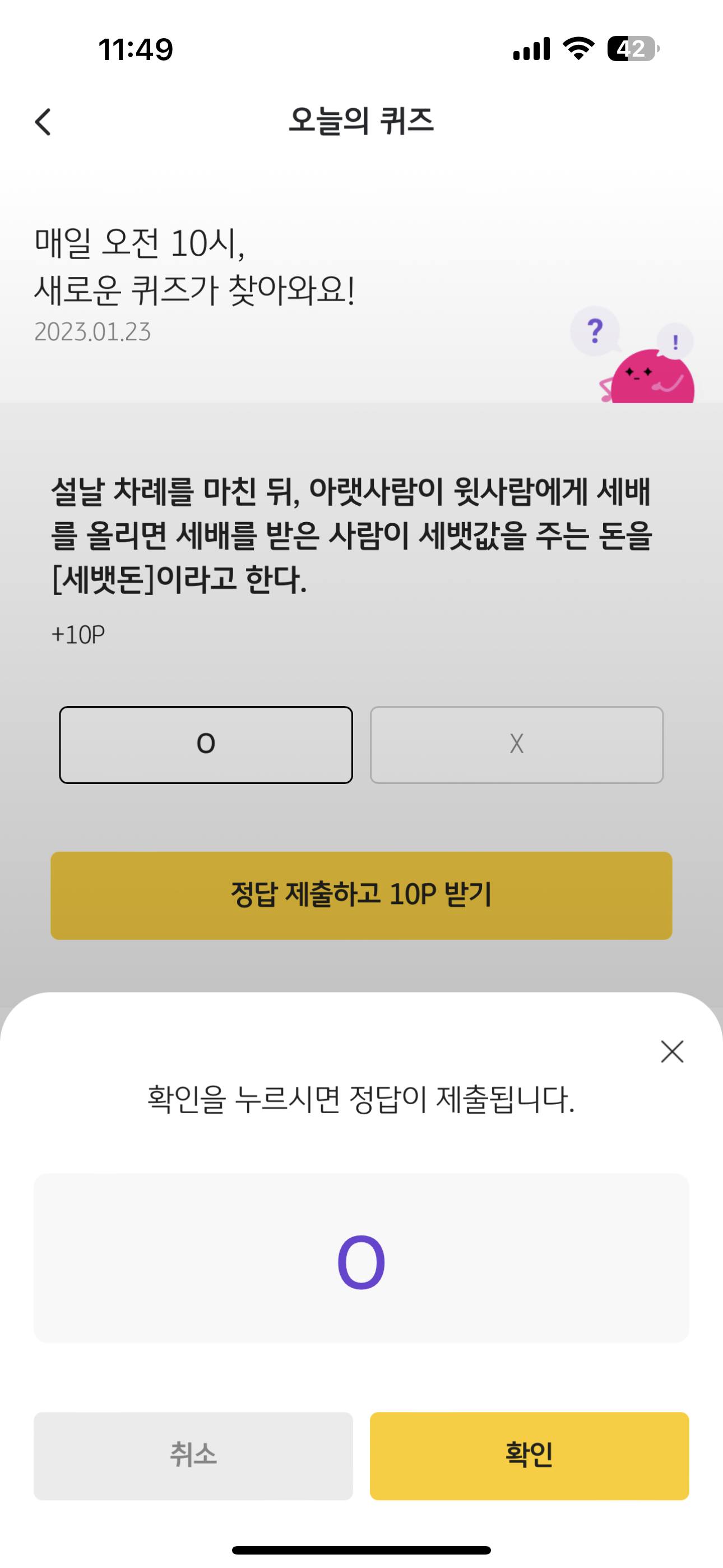 리브메이트 KB PAY 오늘의 퀴즈 1월 23일 정답은 O 입니다