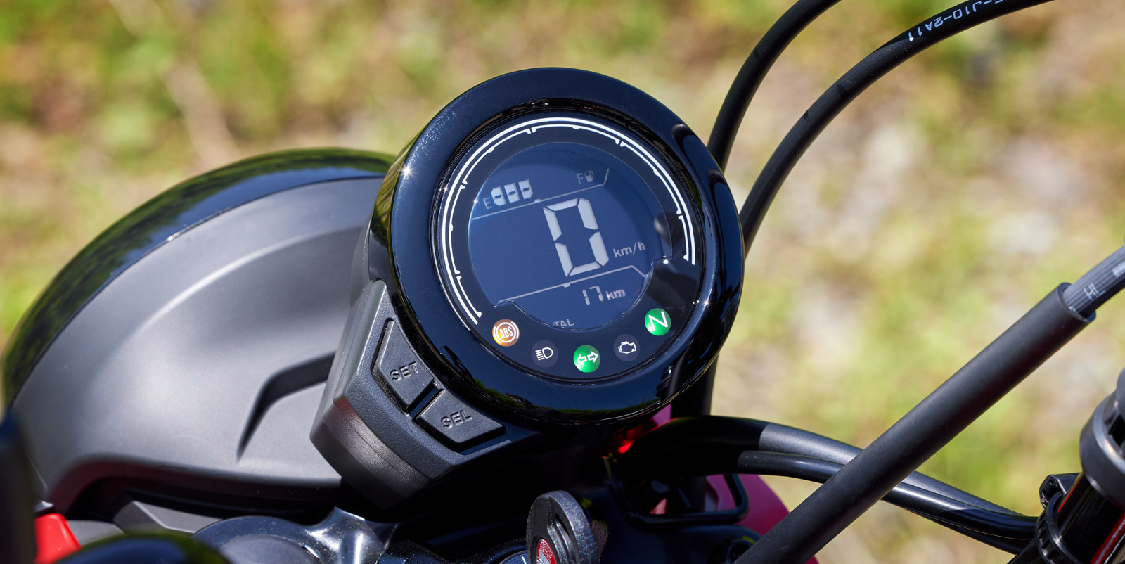 2023 혼다 헌터커브 CT125는 원형의 디지털 LCD 계기판입니다. 간단하지만 꼭 필요한 정보들을 잘 보여주고 있습니다.