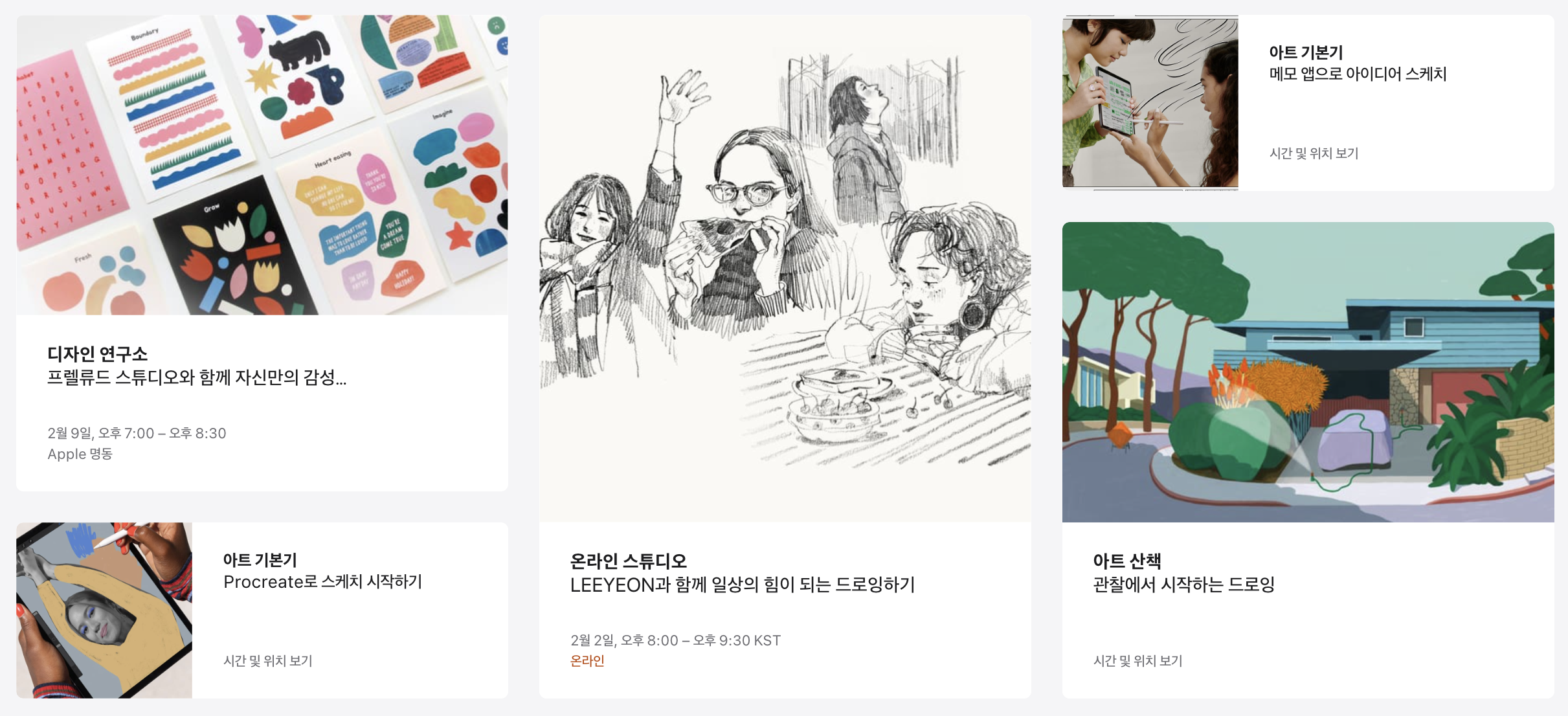 아래 애플스토어 Today at Apple 사이트에서 일정 확인하고 등록하시면 됩니다.