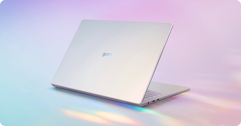 LG 그램 스타일은 빛의 각도나 보는 방향에 따라 다채롭게 색이 변하는 오로라 화이트 색상과 코닝사의 고릴라 글라스 소재를 적용해 노트북 외관 디자인을 더욱 고급스럽게 표현했습니다.