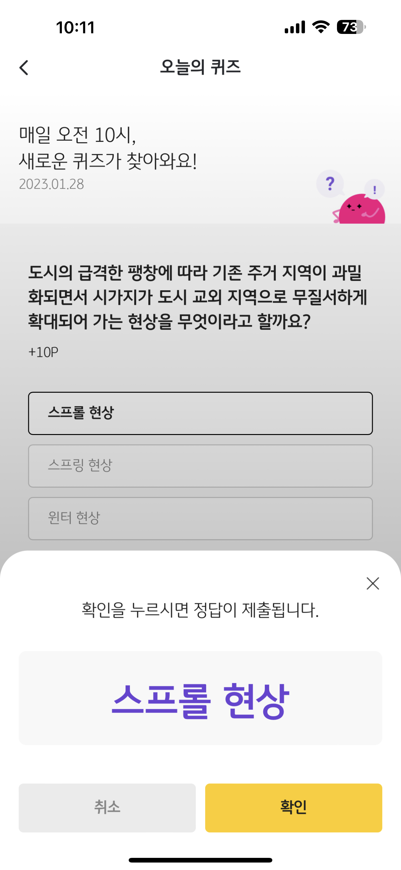 리브메이트 KB PAY 오늘의 퀴즈 1월 28일 정답은 스프롤 현상입니다.