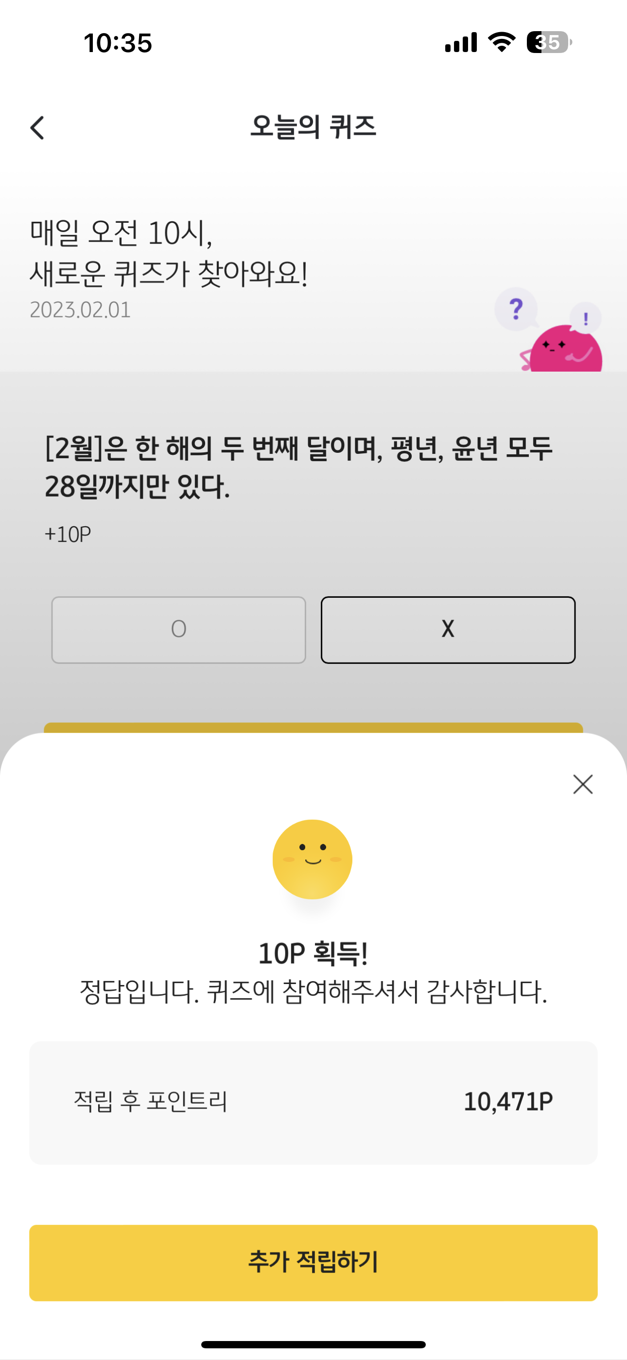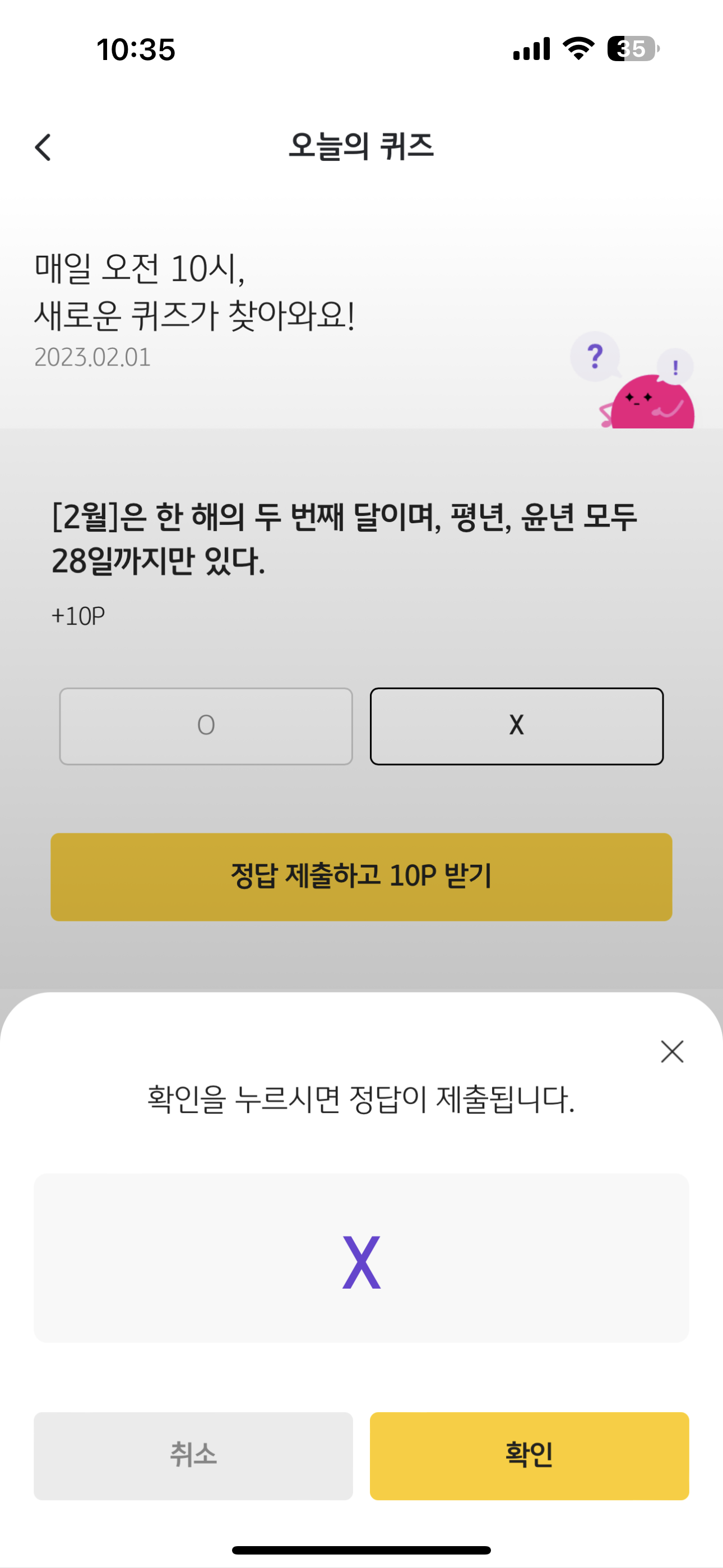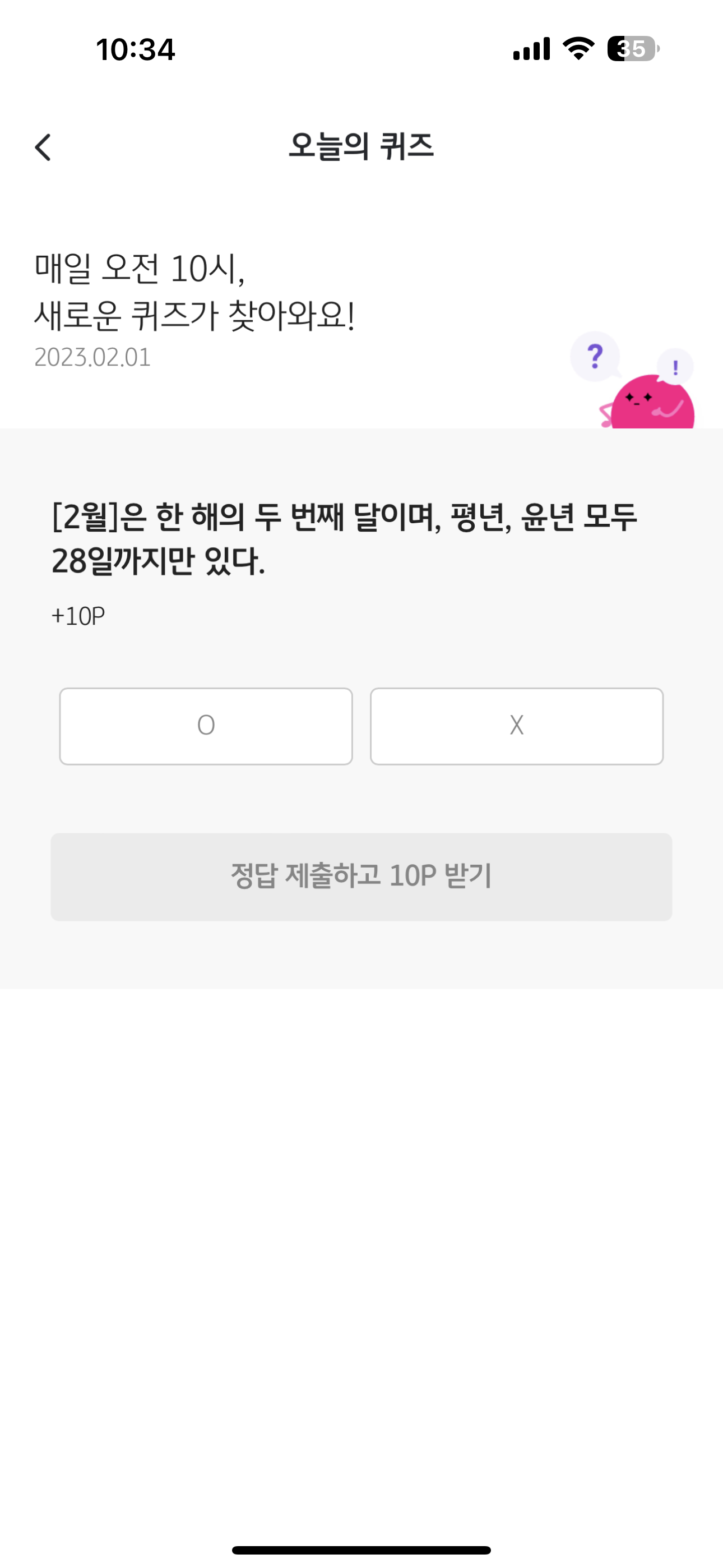 리브메이트 KB PAY 오늘의 퀴즈 2월 1일 정답은 X 입니다