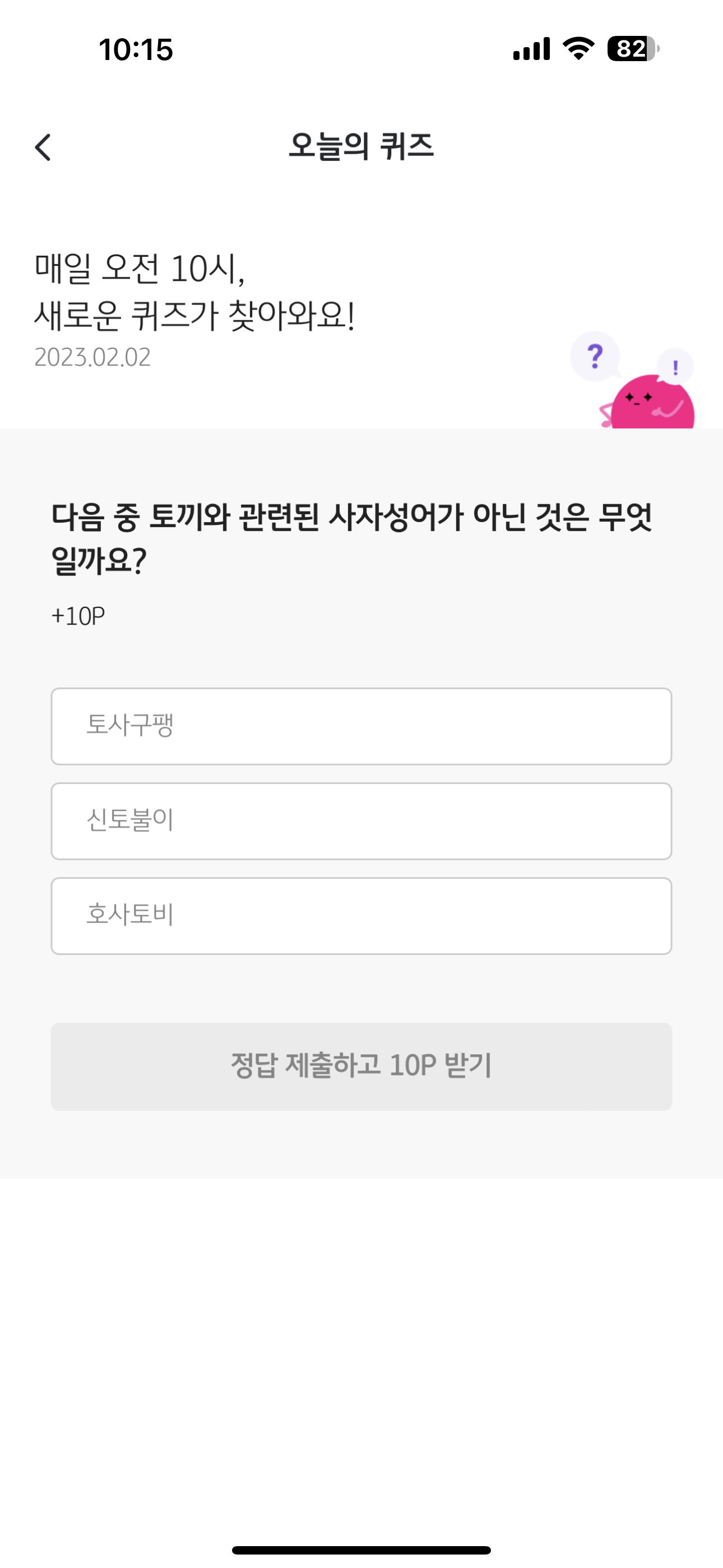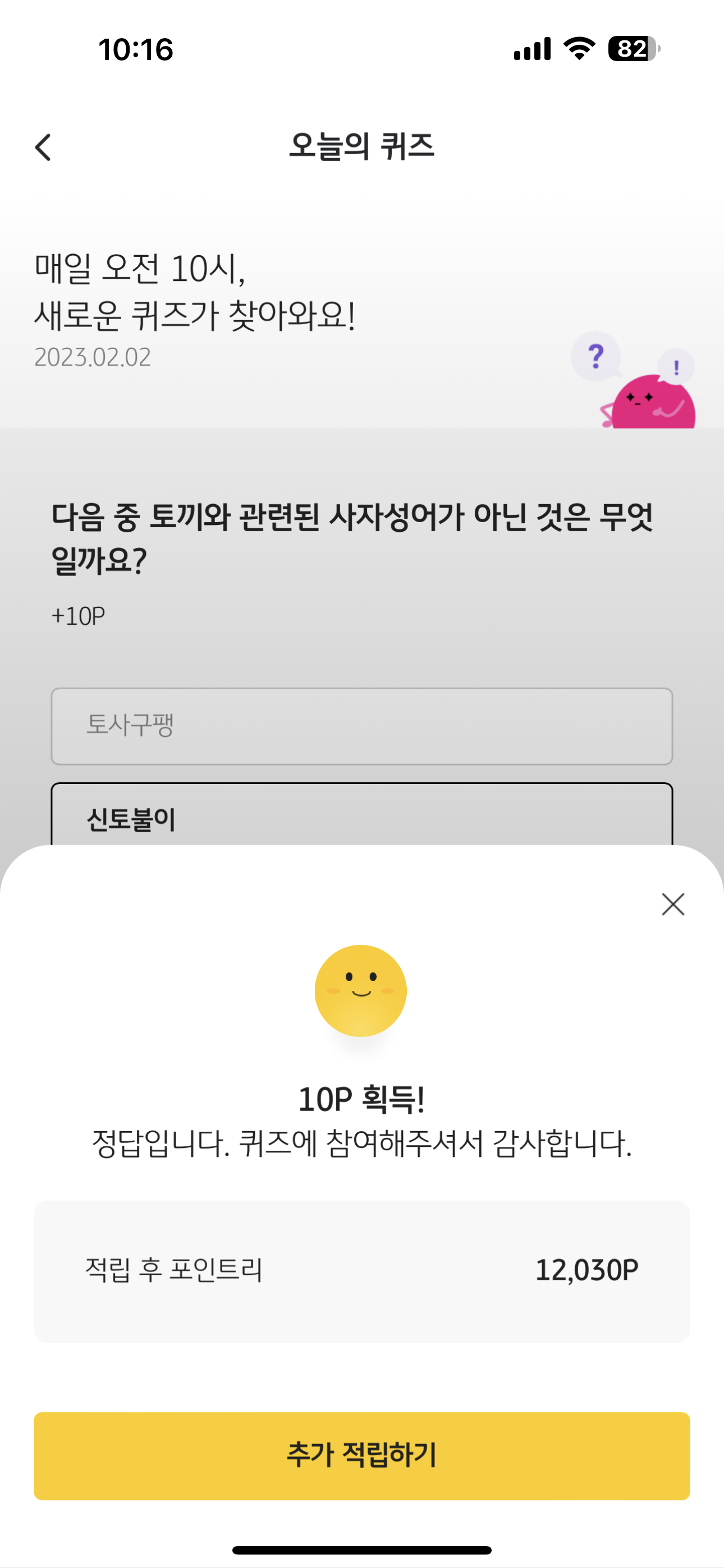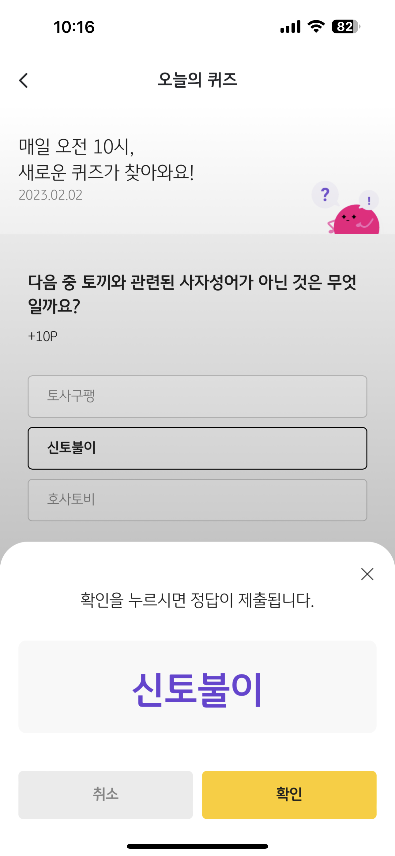 리브메이트 KB PAY 오늘의 퀴즈 2월 2일 정답은 신토불이 입니다