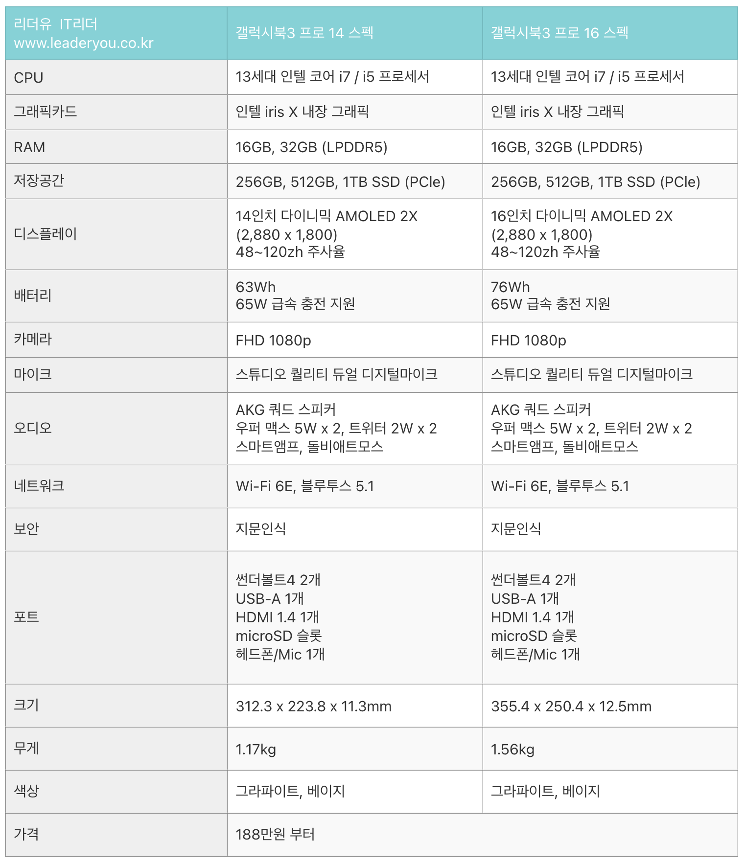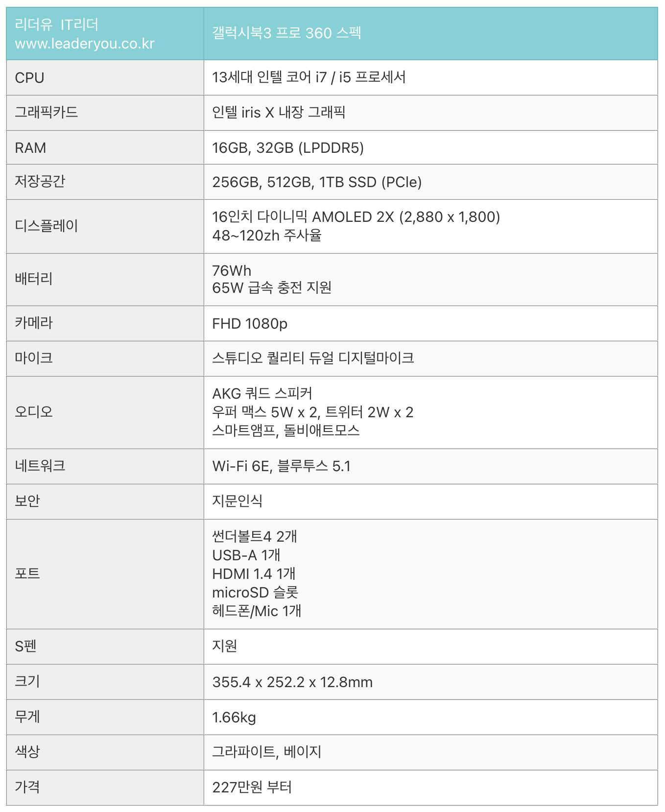 갤럭시북3 프로 스펙 (노트북 사양) 참고해 두세요