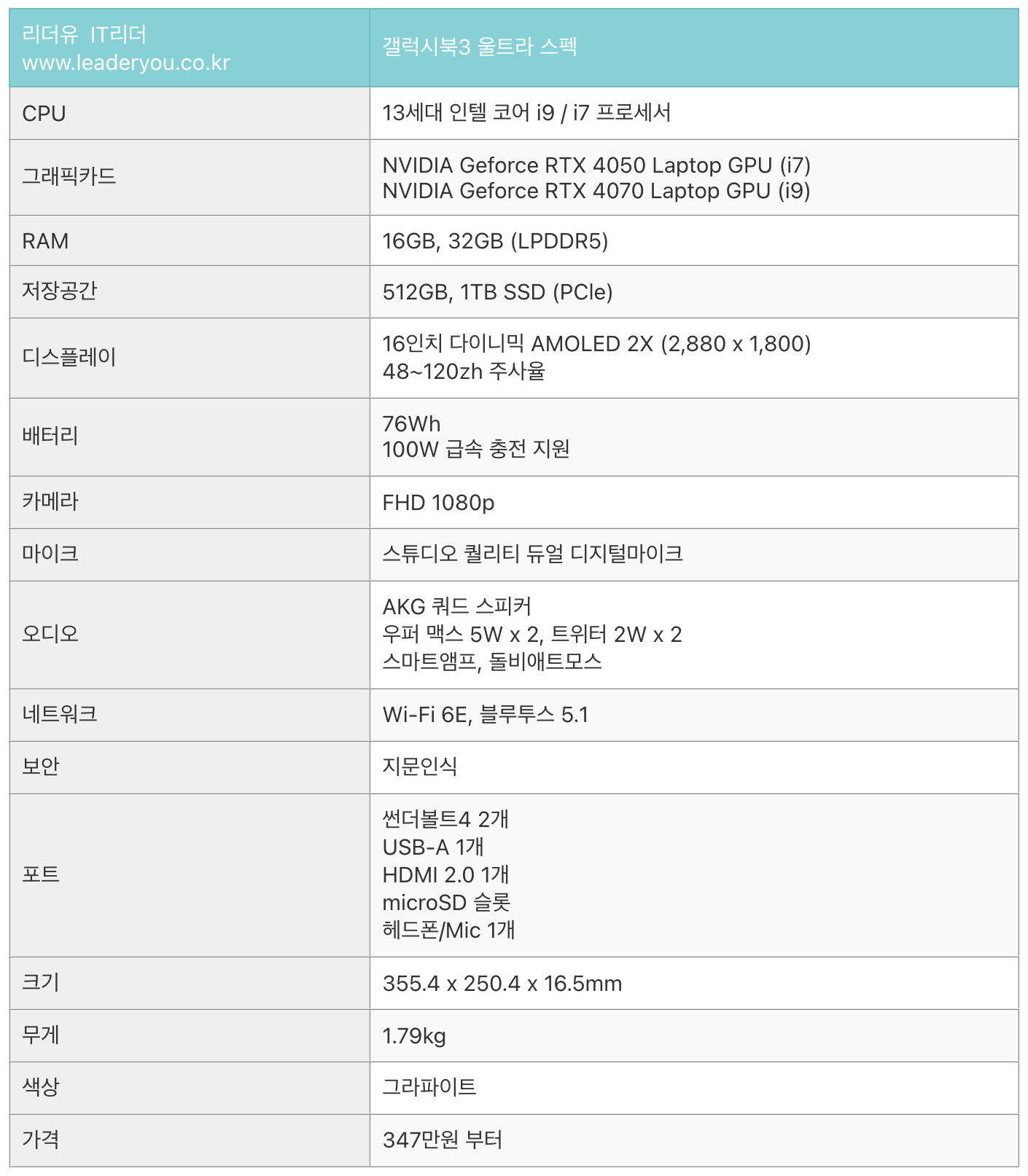 갤럭시북3 울트라 스펙 (노트북 사양) 참고해 두세요
