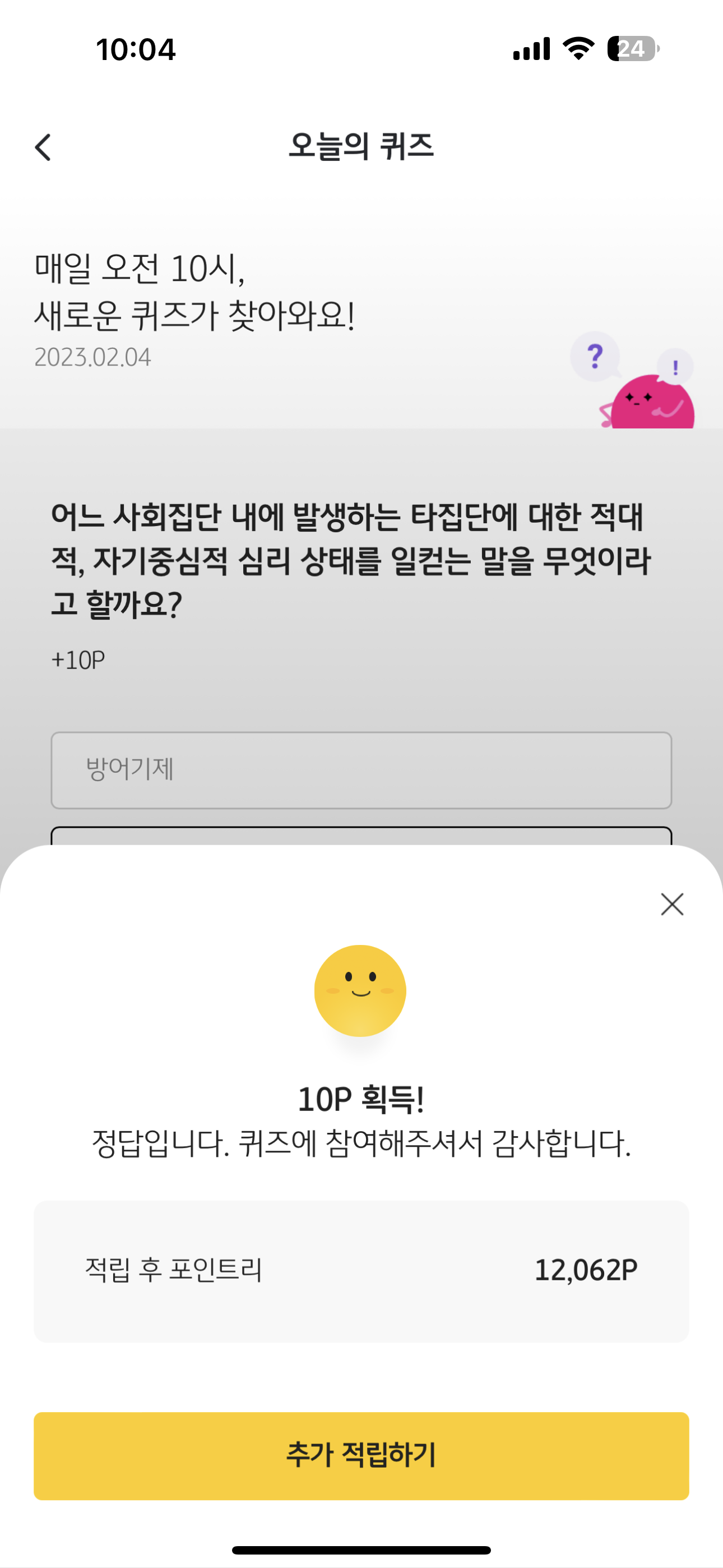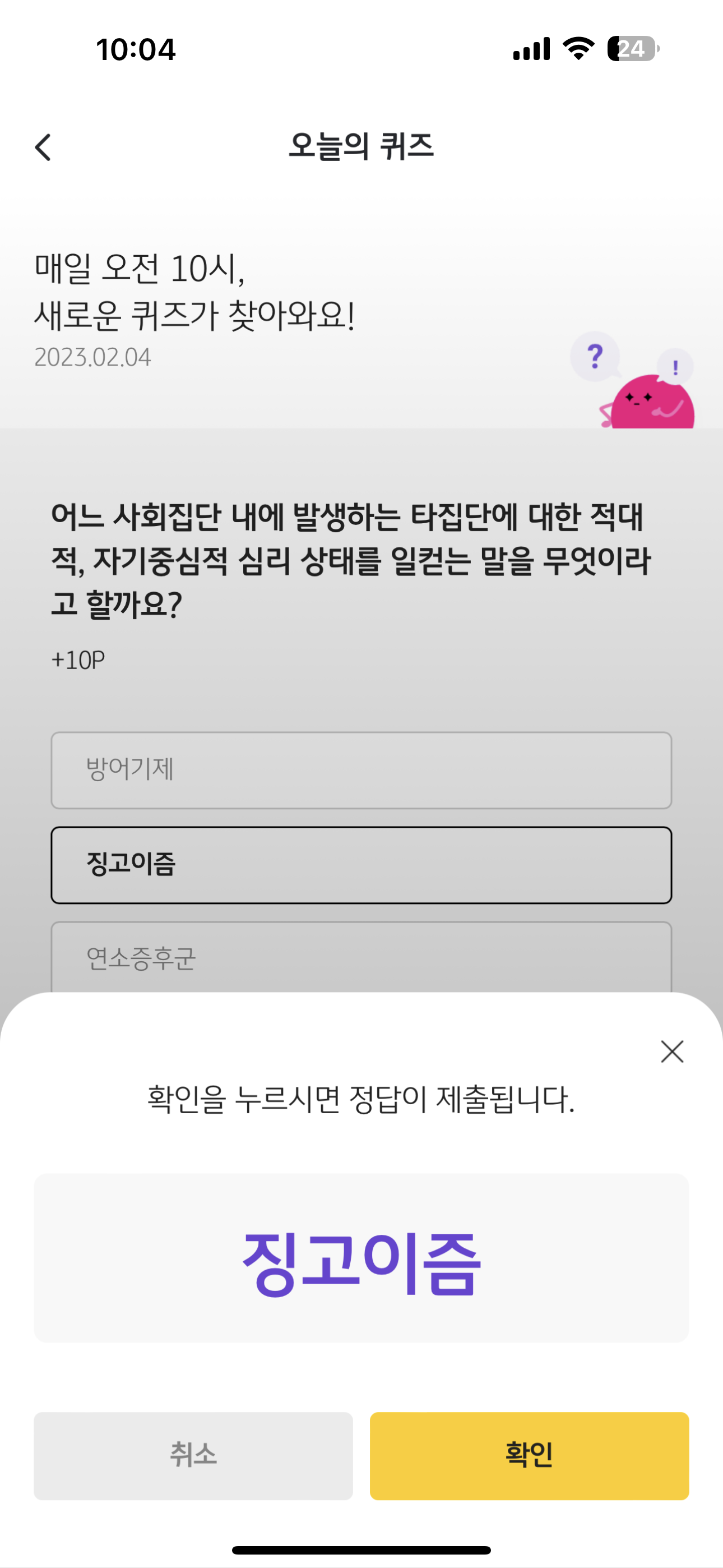 리브메이트 KB PAY 오늘의 퀴즈 2월 4일 정답은 징고이즘 입니다