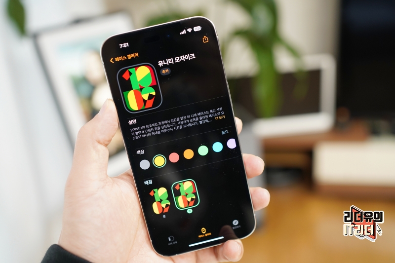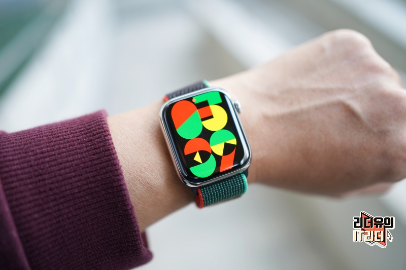 그리고 애플워치에는 새로운 유니티 모자이크 워치 페이스를 적용했는데요. 아이폰 iOS16.3 업데이트와 애플워치 watchOS9.3 업데이를 하면 해당 워치페이스를 만날 수 있습니다. 유니티 모자이크 워치페이스는 녹색, 검은색, 빨간색, 노란색의 기하학적 모양을 통합하고 있고 분의 변화에 따라 각 숫자는 다른 숫자의 일부를 활용해 새로운 형태로 변형되는 모습을 볼 수 있습니다.