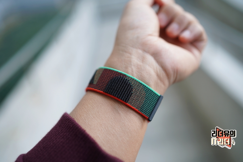 그리고 단단하게 체결이 되는 방식이라 거친 운동에도 좋은 스포츠 밴드이고 소재가 우븐 나일론이라 부드럽고 가벼워 착용감이 좋습니다. 그리고 땀이나 물이 뭍어도 빠르게 건조가 되서 관리도 편하고 좋습니다.