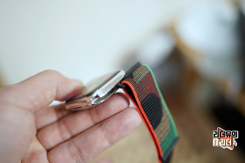 그리고 단단하게 체결이 되는 방식이라 거친 운동에도 좋은 스포츠 밴드이고 소재가 우븐 나일론이라 부드럽고 가벼워 착용감이 좋습니다. 그리고 땀이나 물이 뭍어도 빠르게 건조가 되서 관리도 편하고 좋습니다.