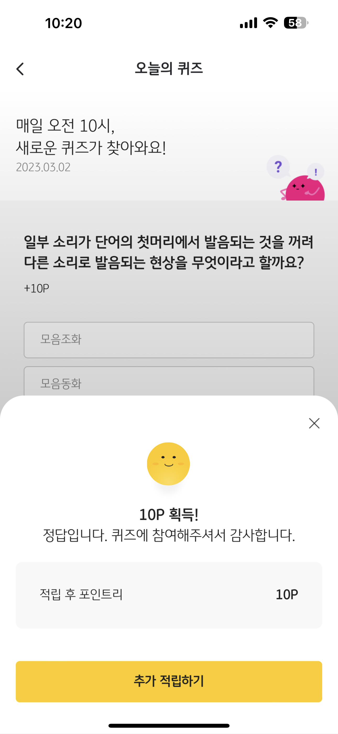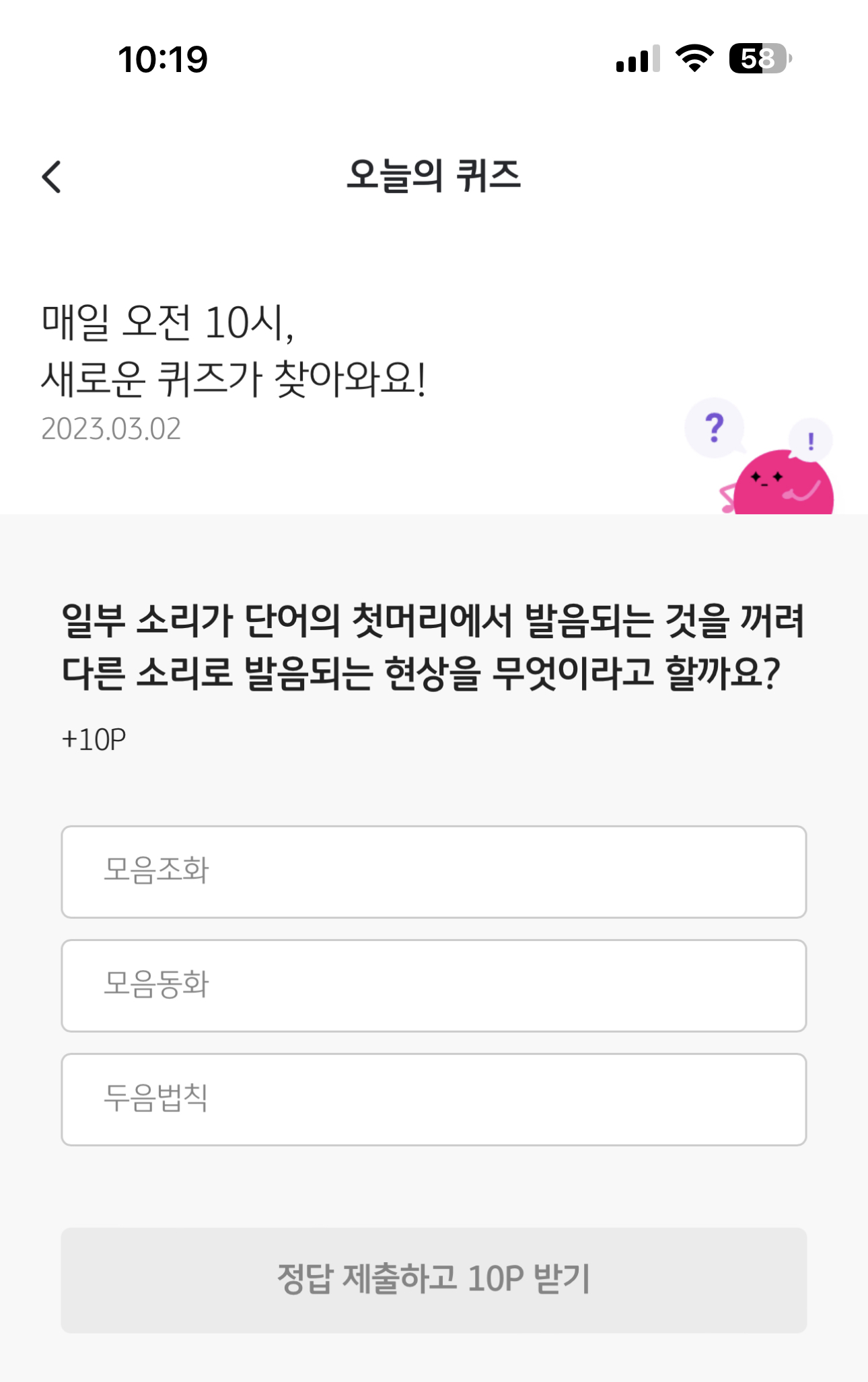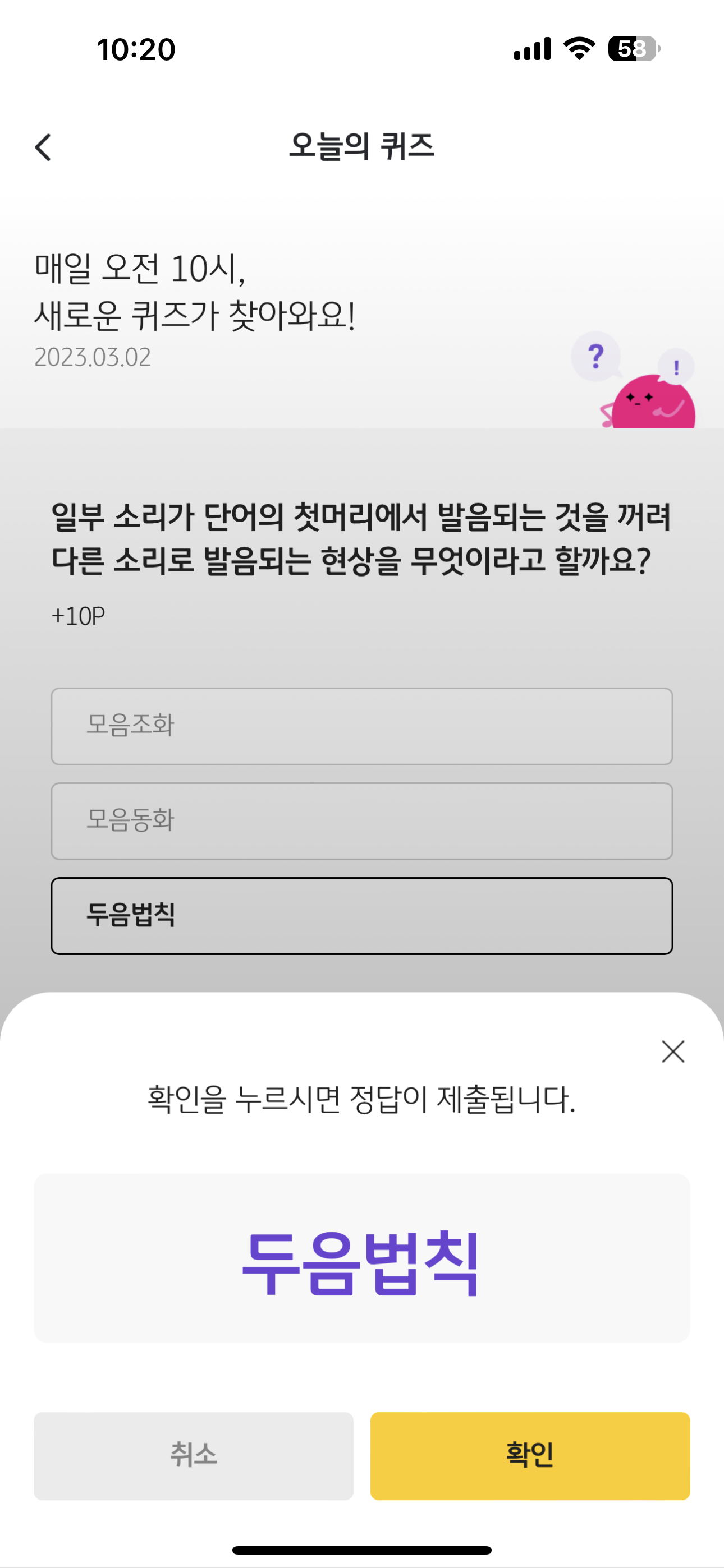 리브메이트 KB PAY 오늘의 퀴즈 3월 2일 정답은 두음법칙 입니다