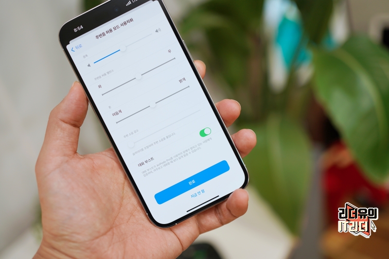 해당 기능 설정은 아이폰 설정으로 가서 손쉬운 사용 -> 오디오 조정으로 들어가고 오디오 설정 사용자화해서 해당 기능을 활성화 할 수 있습니다.