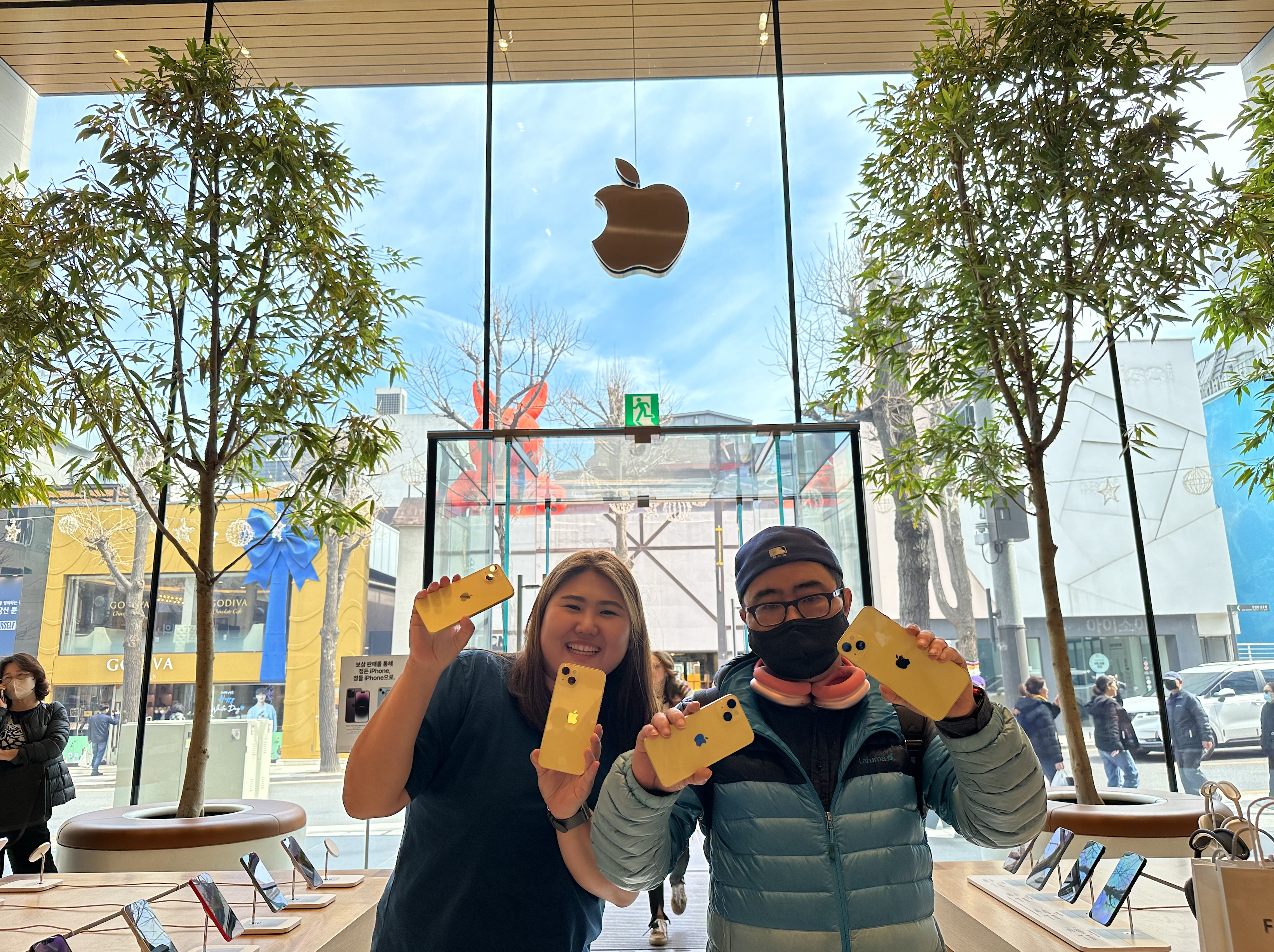 애플스토어 명동 아이폰14 옐로 전시