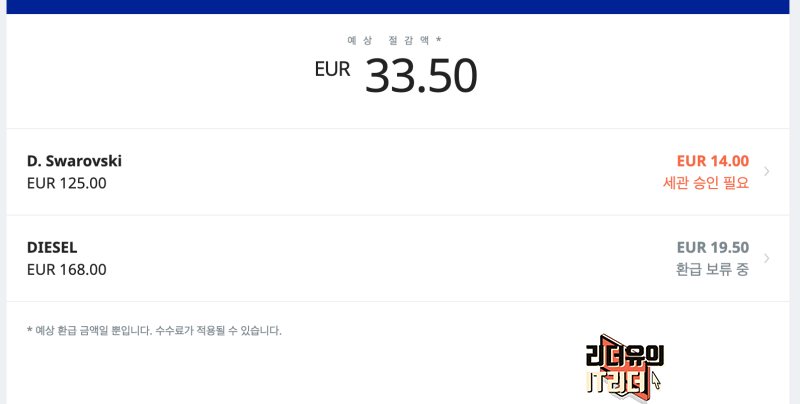 오스트리아, 스페인 유럽 여행을 다녀 온 후 텍스리펀이 어떻게 되고 있나 확인해 봤습니다. 그러니 오스트리아에서 산 스와로브스키는 세관 승인 필요라고 나왔고 스페인에서 구입한 디젤은 환급 보류 중이라고 표시되어 있네요.