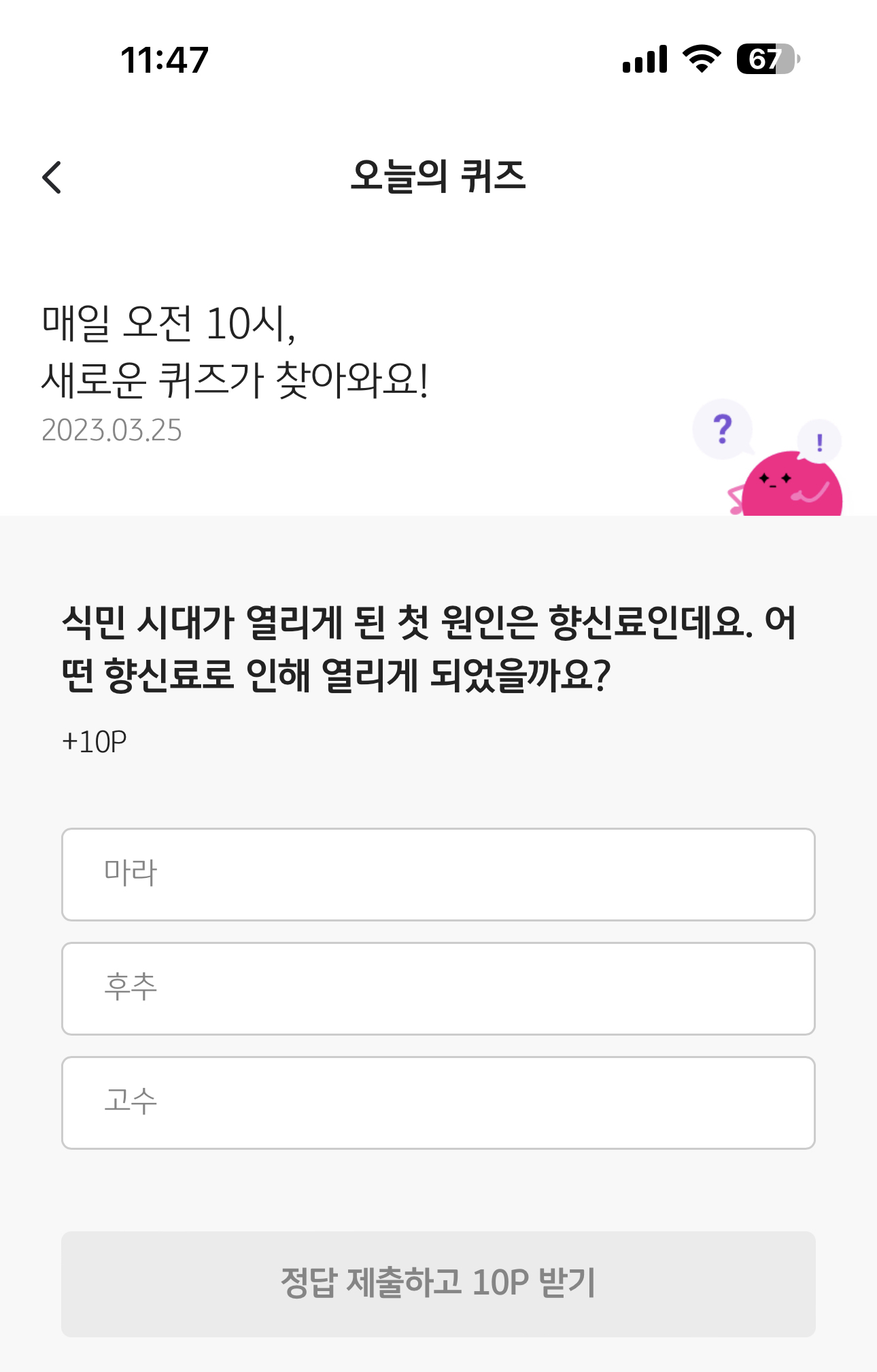 KB PAY 3월 25일 정답은 후추입니다