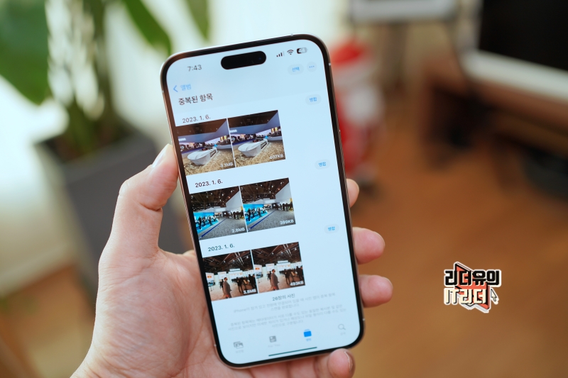 아이폰 사진 앱 - 앨범 - 중복된 항목에 가면 앨범 안의 중복된 사진 및 비디오를 찾을 수 있는데요. iOS16.4에서는 이 범위가 iCloud 공유 사진 보관함까지 확대되어 통합적인 관리를 할 수 있게 개선되었습니다.
